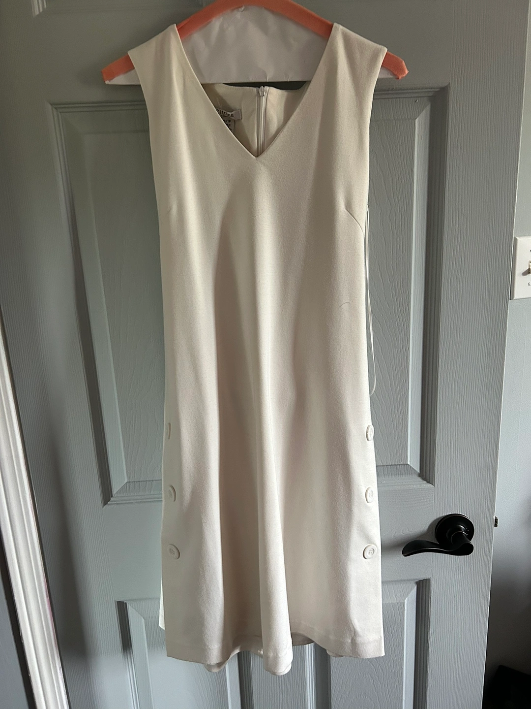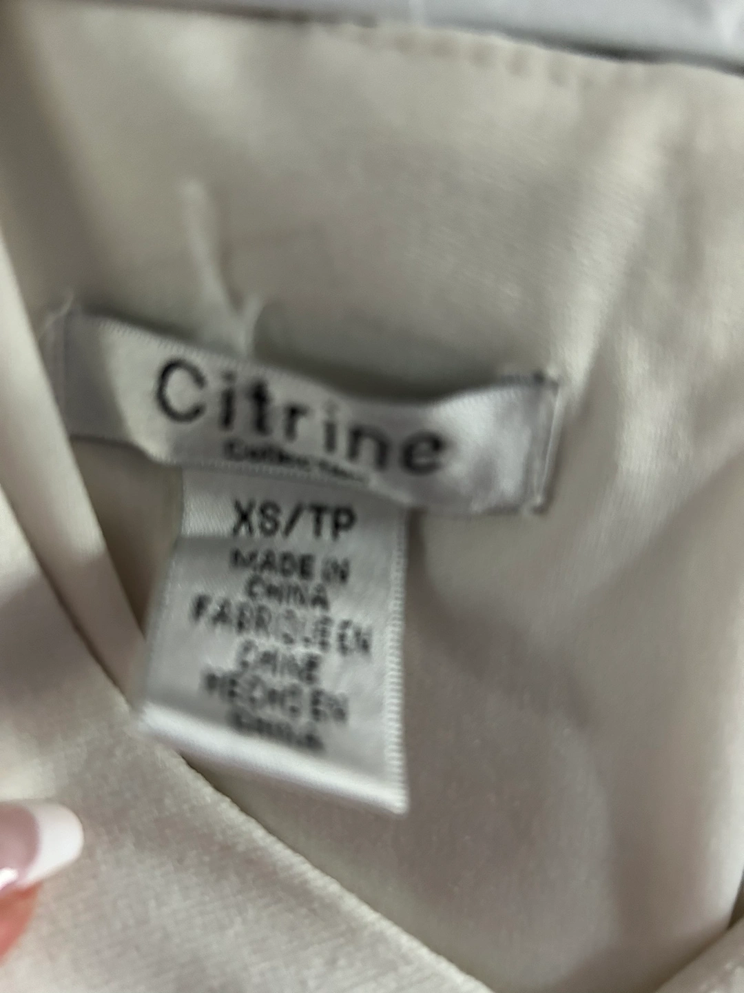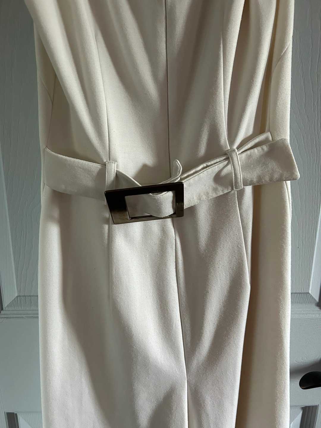 Pristine condition. Cream coloured with pretty adjustable buckle at back. Pretty buttons on skirt side. Comfortable material. Great for spring/summer events
