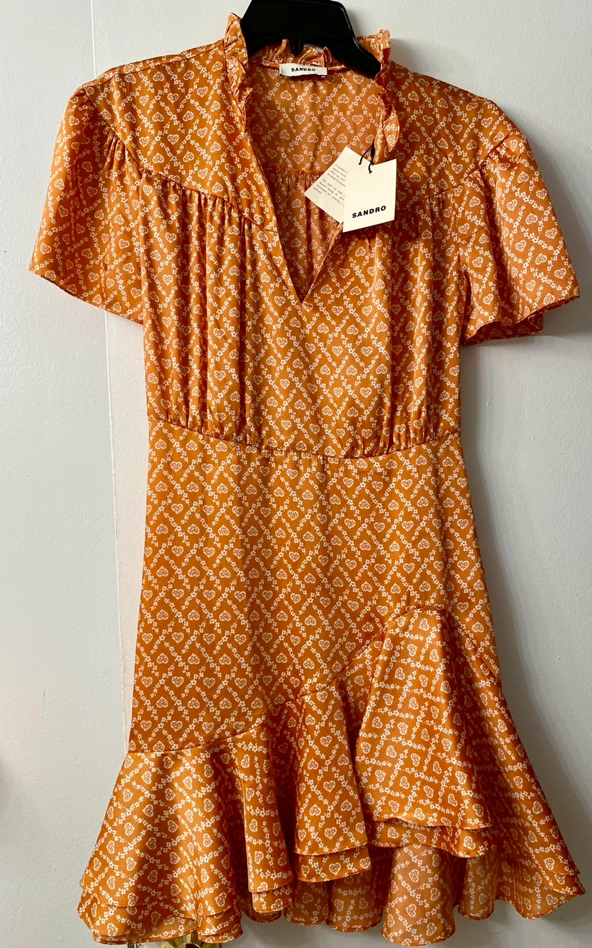 New with tag Suzen ruffled printed real satin-twill mini dress . Original price over 300 US/ over 450 Cad. Rare find model. Got it for my daughter but never wore. Too small for her on the top. See authenticity on the tags. For discount you can bundle with the other items from my list.