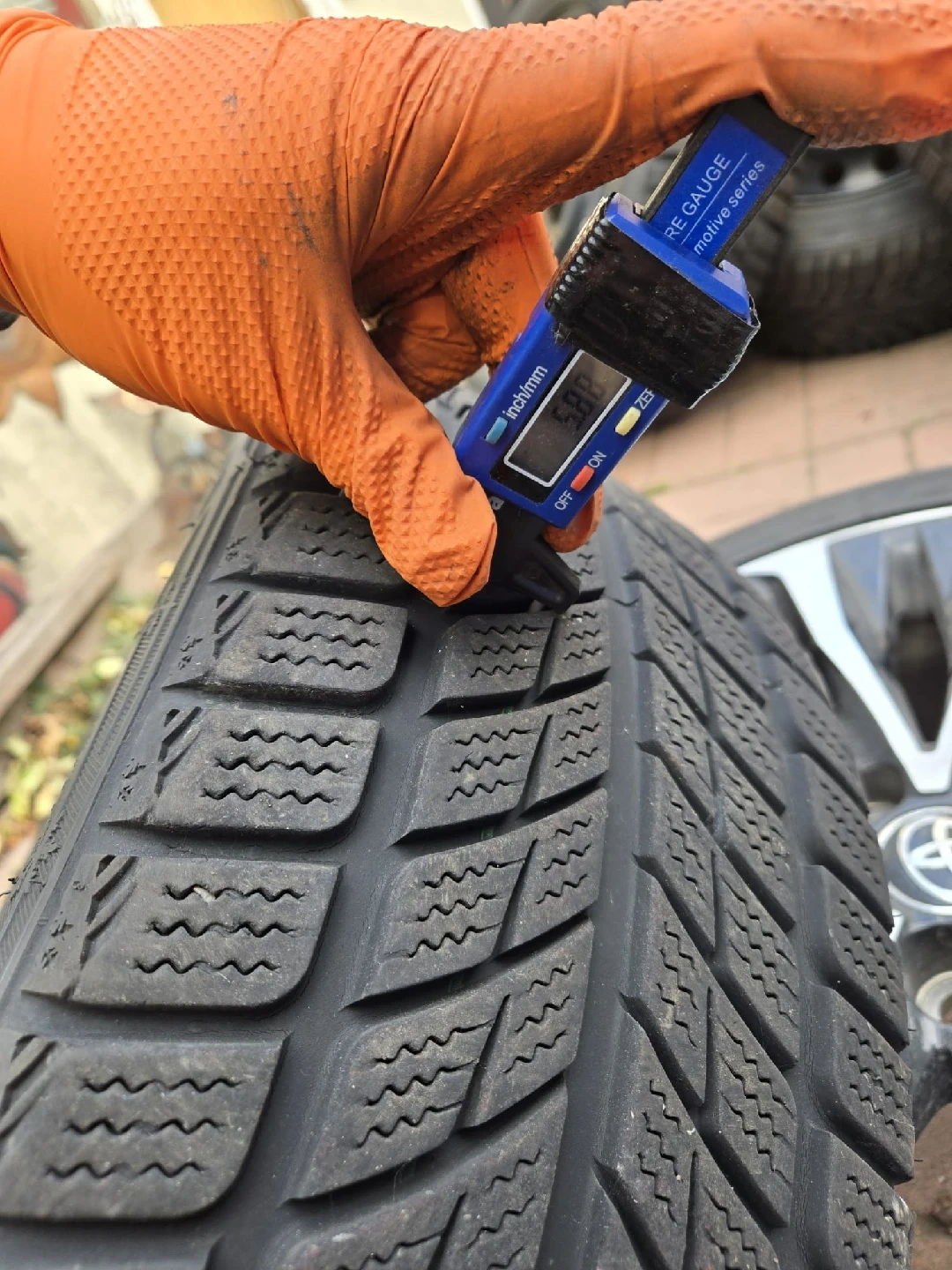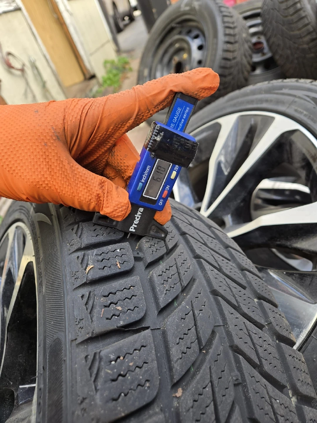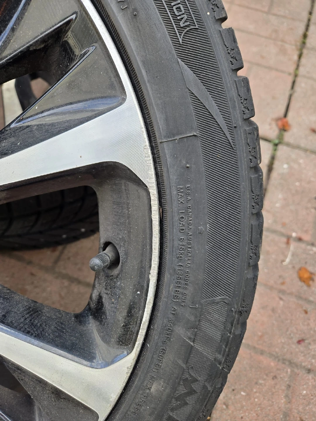 26215/45R17 winter tires on OEM Toyota alloys 215/45R7 winter tires 5x100 bolt pattern 5.8-6mm tread remaining Slight curb rash on 2 of the wheels These came off our Corolla and have lots of life left. We have traded in the vehicle so we no longer need them.