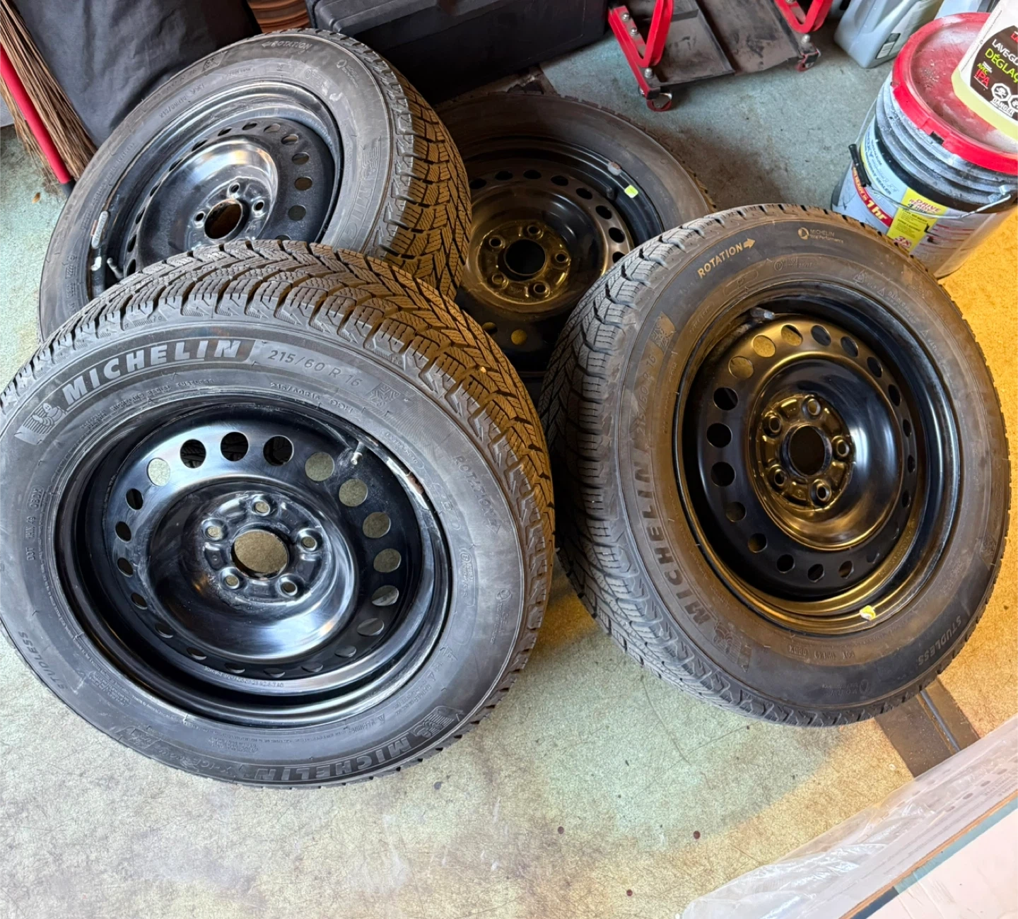 215/60R16 MICHELIN X-ICE SNOW TIRES ON RIMS