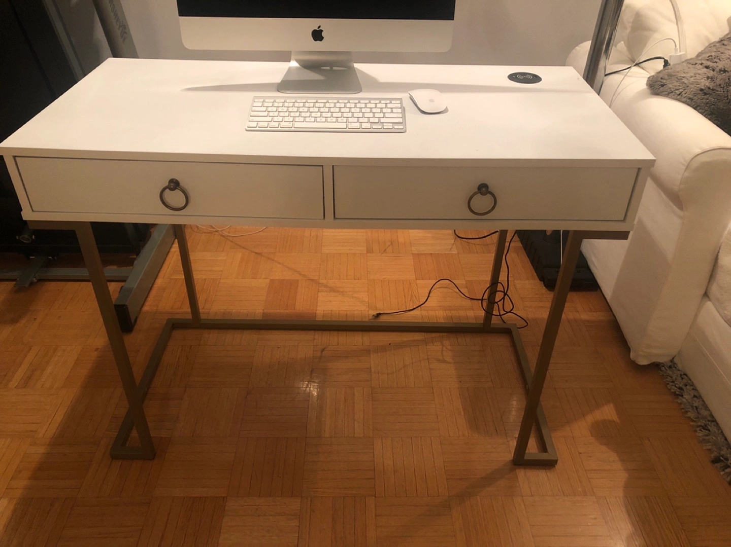 Pretty white and gold table. Can be used for office or as an entrance table
