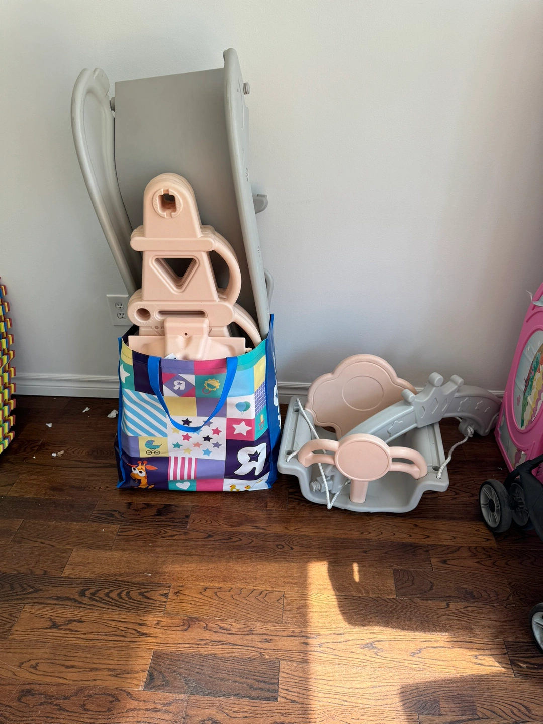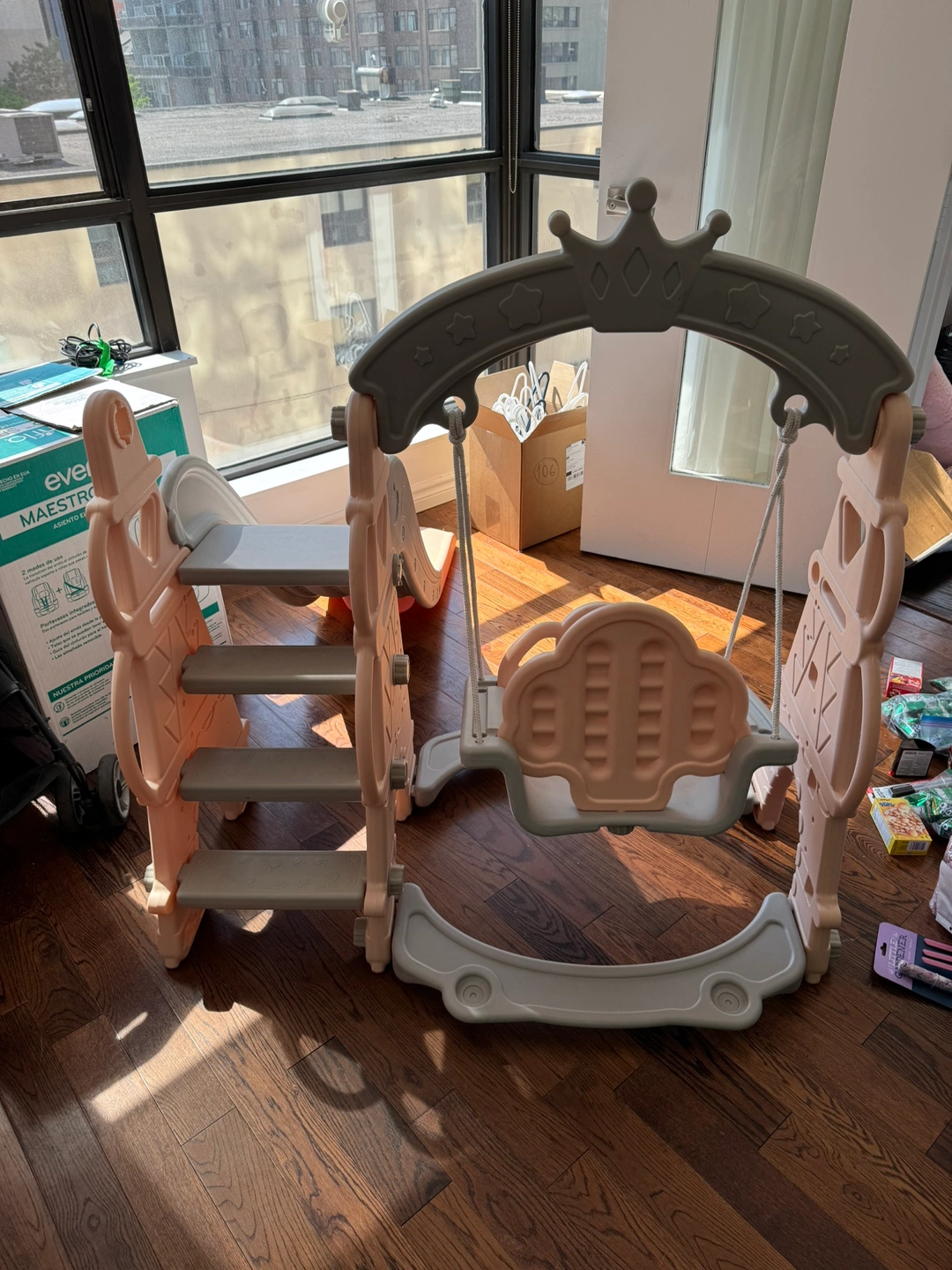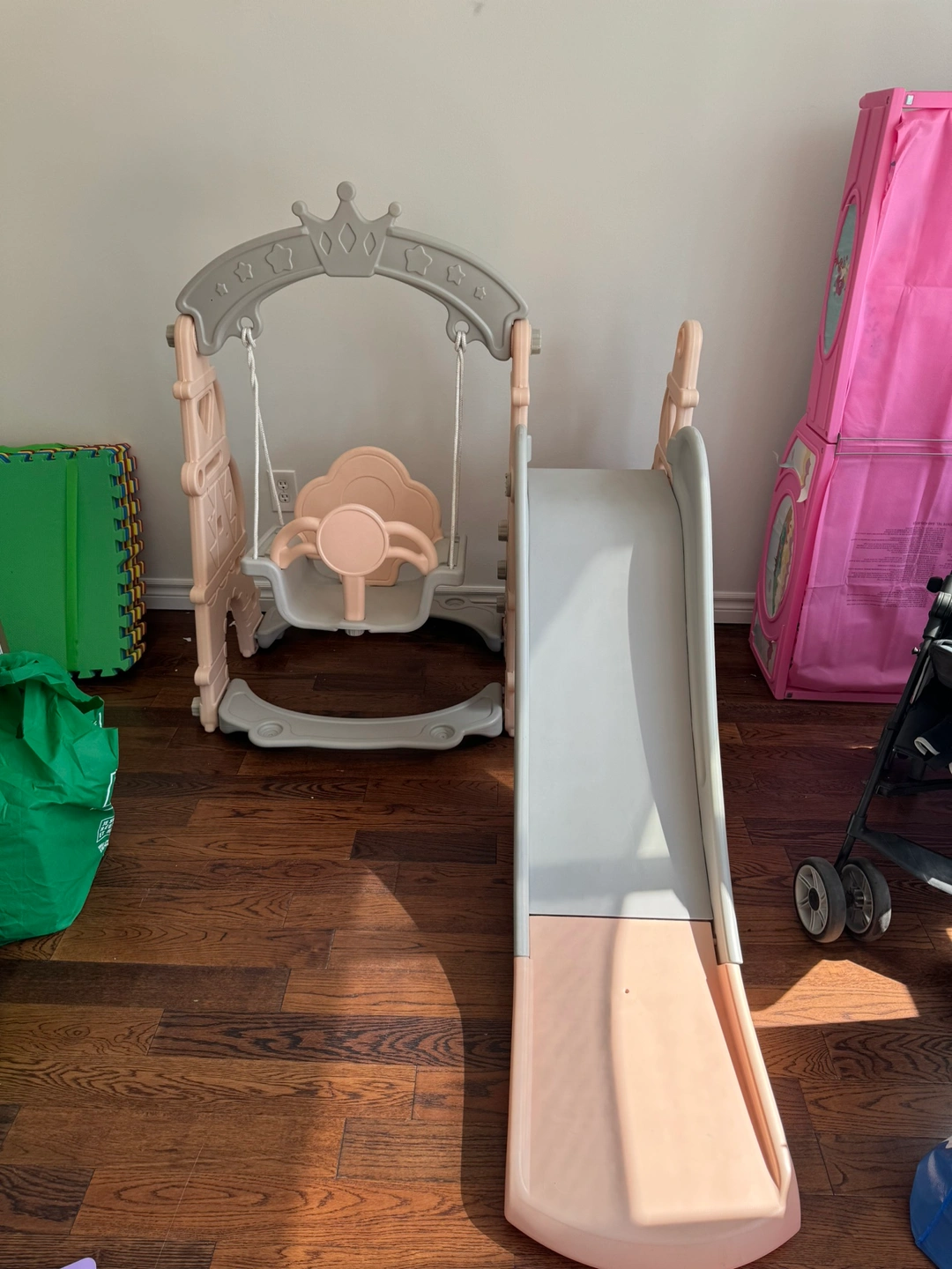 Sturdy plastic slide and swing set. Great for smaller children indoors or in the back yard. Easy to put together and portable.