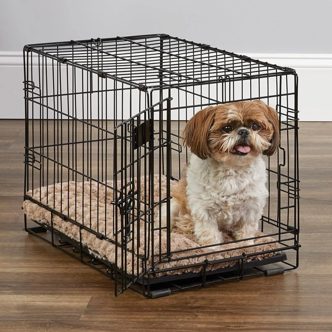 SINGLE DOOR FOLDING DOG CRATE ideal for XS dog breeds w/ adult weight of 7 - 12 pounds | Convenient divider panel allows crate to expand as your dog grows | iCrate measures 22L x 13W x 16H inches