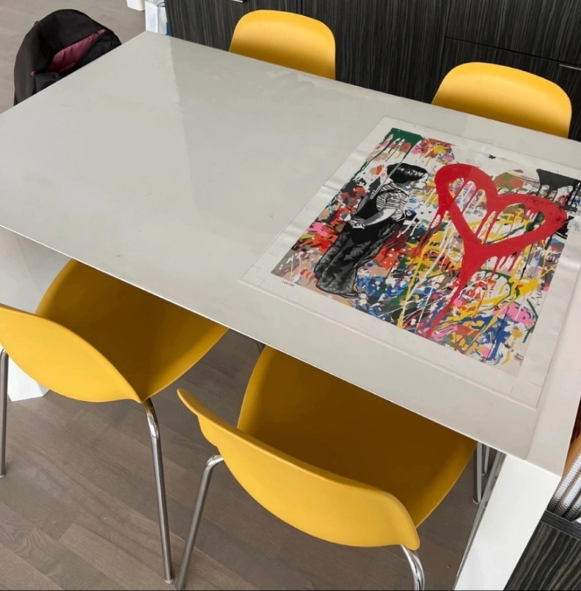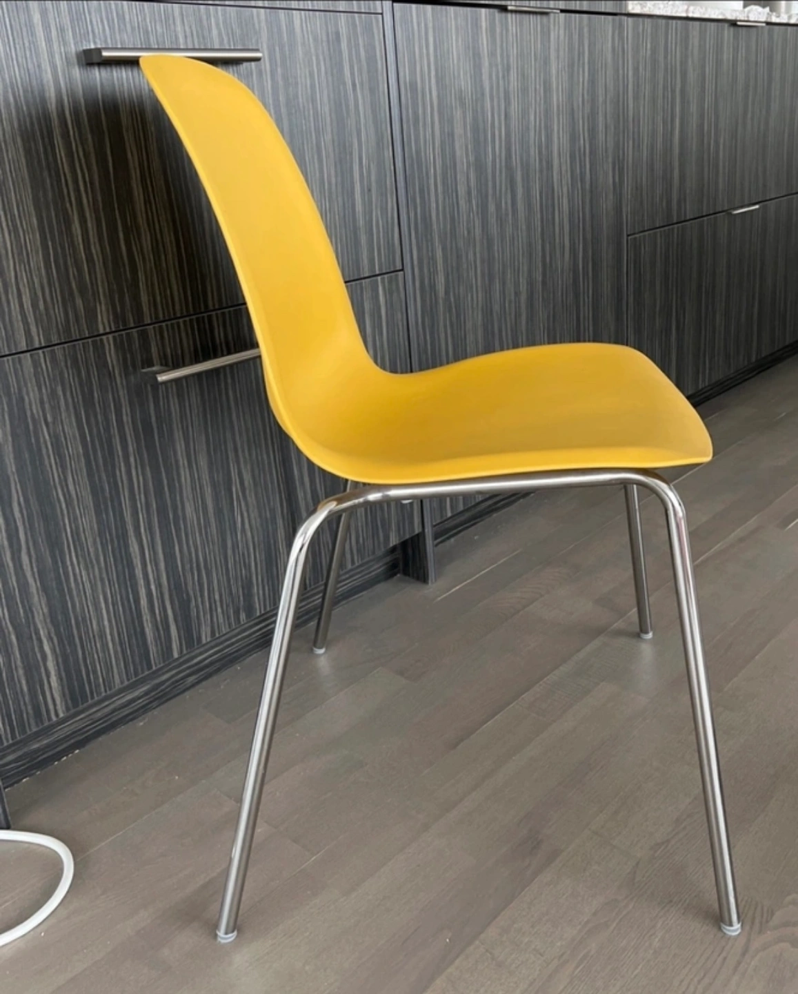 4 Yellow dining chairs from Ikea.