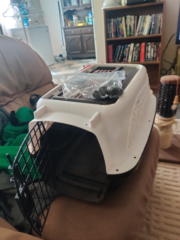 have this cat carrier but our cats outgrew it. free to anyone who needs one. it has all the screws to hold it together, and can come apart to save space.