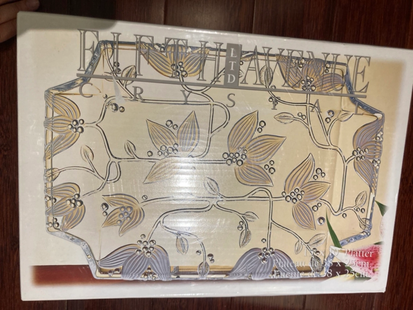 Brand new crystal platter 15x10inches. Retails over $25USD.