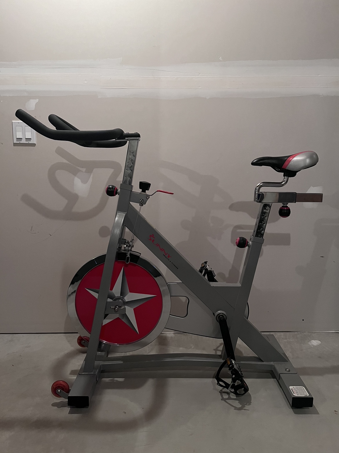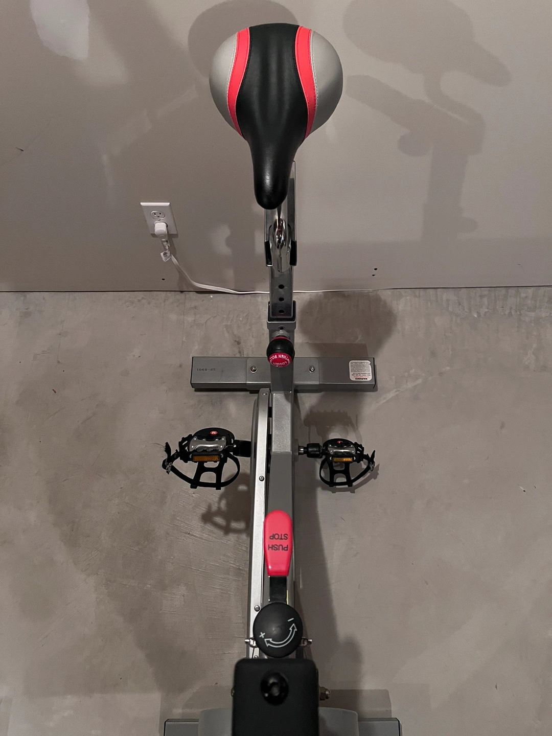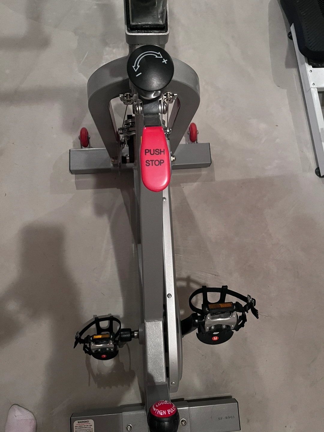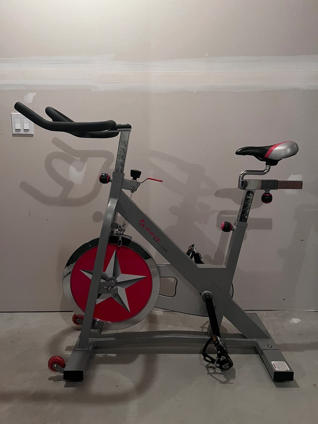 Spin bike with features such as adjustable 40lb flywheel, dual Felt Pad Resistance. 2 way adjustable handlebars and 4 way adjustable seat. Wheels for easy relocation. Pick up Auburn Bay.