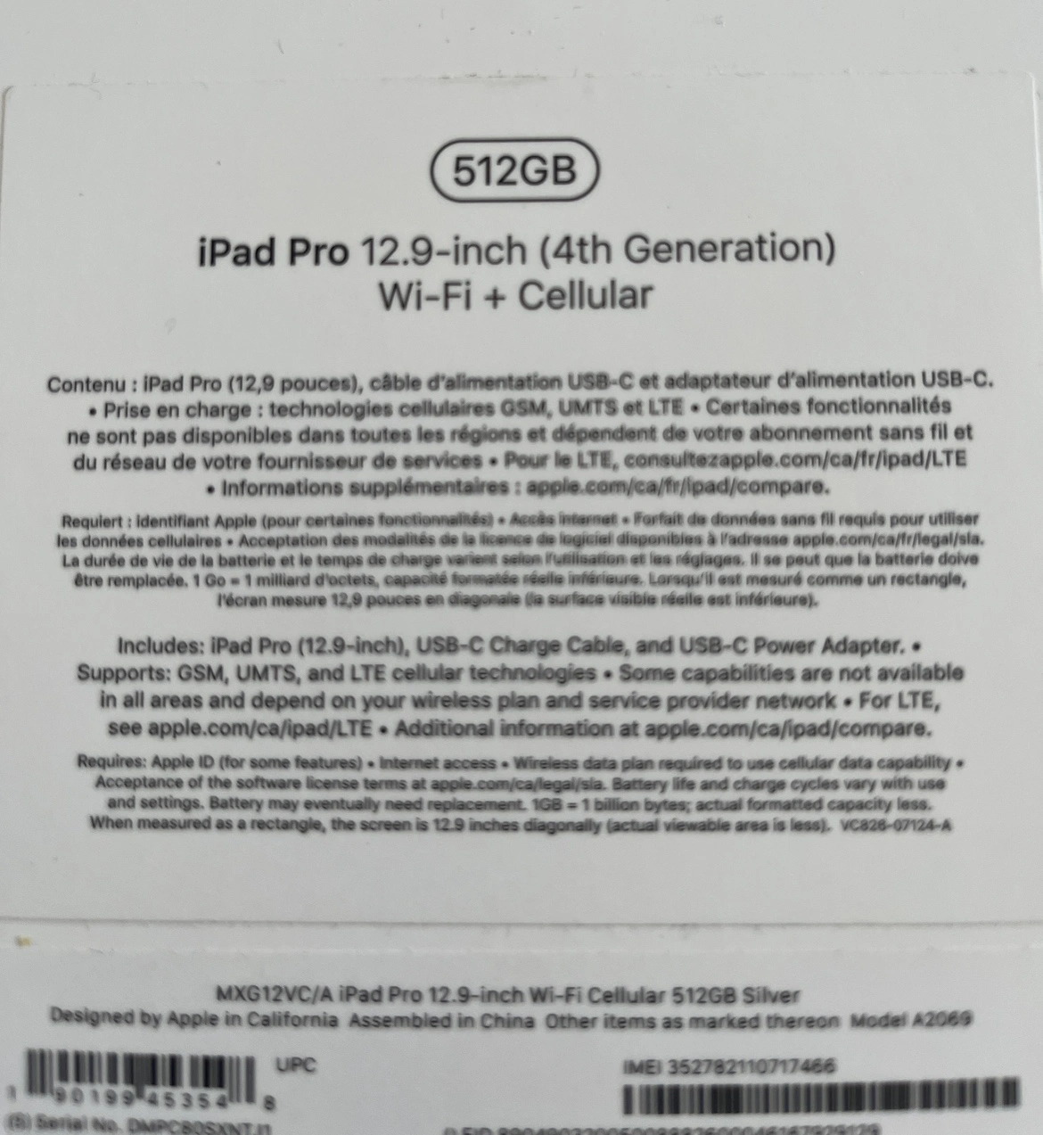 iPad Pro 12.9” (4th gen), silver, 512GB, cellular