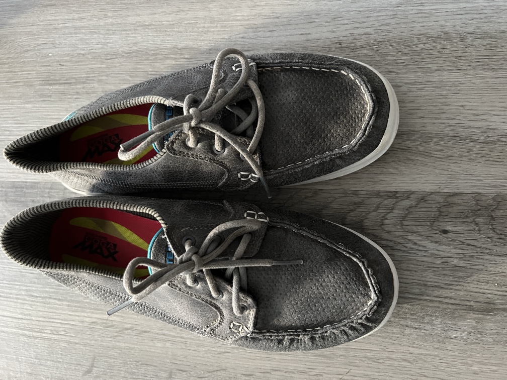 425Unisex grey Skechers shoe. Size: 37-38 Hasn’t been worn in a long time and would like to give it out. Pick up only.