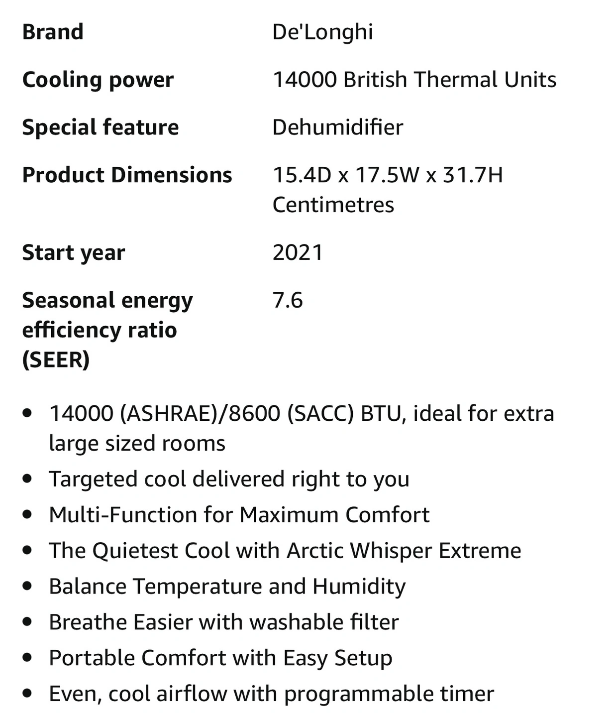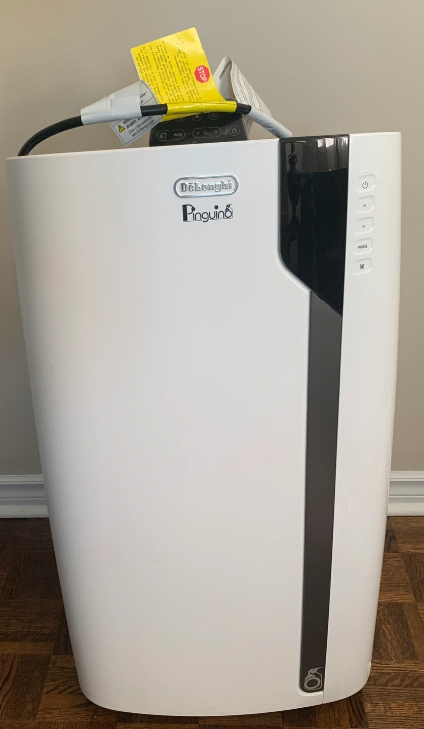 Used like new De'Longhi Portable Air Conditioner 14,000 BTU,cool extra large rooms up to 700sqft,remote,energy saving mode,extremely quiet,dehumidifier,fan,programmable, along with the TURBRO Portable Air Conditioner Exhaust Hose, also included gulrear Slide door kit plate which is adjustable for any type of window. Bought it last summer and used only for 1 month. Works perfectly and cools down pretty quickly and very well the apartment/room. Originally purchased 785 + tax. It has only a scratch on the side (barely noticeable) done during storage period.