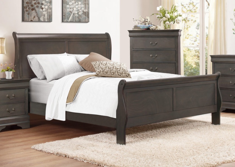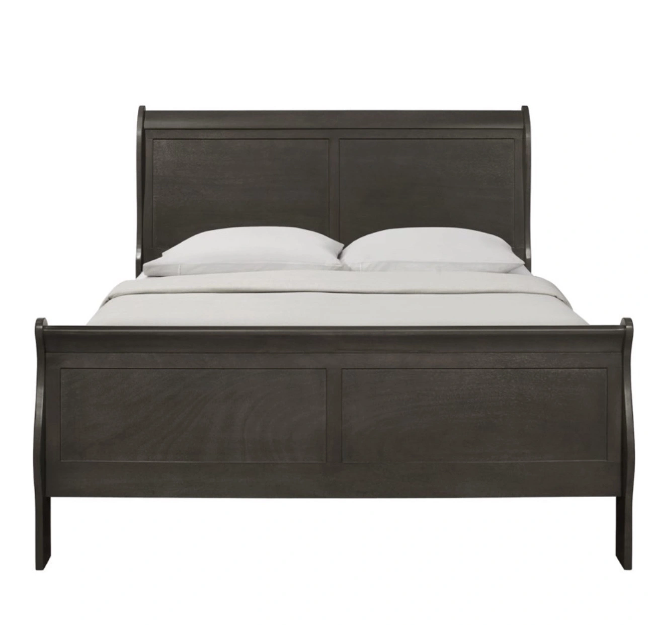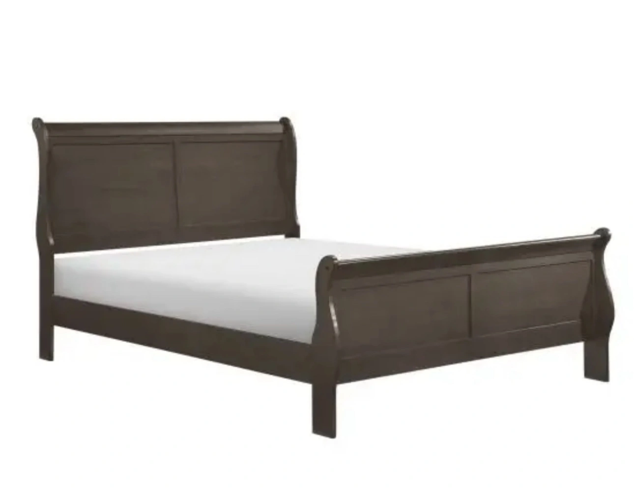 Elevate your bedroom with the elegant Mayville Collection bed frame, inspired by classic Louis Philippe styling. This traditional full sleigh bed features a timeless burnished stained gray finish, offering both style and durability.