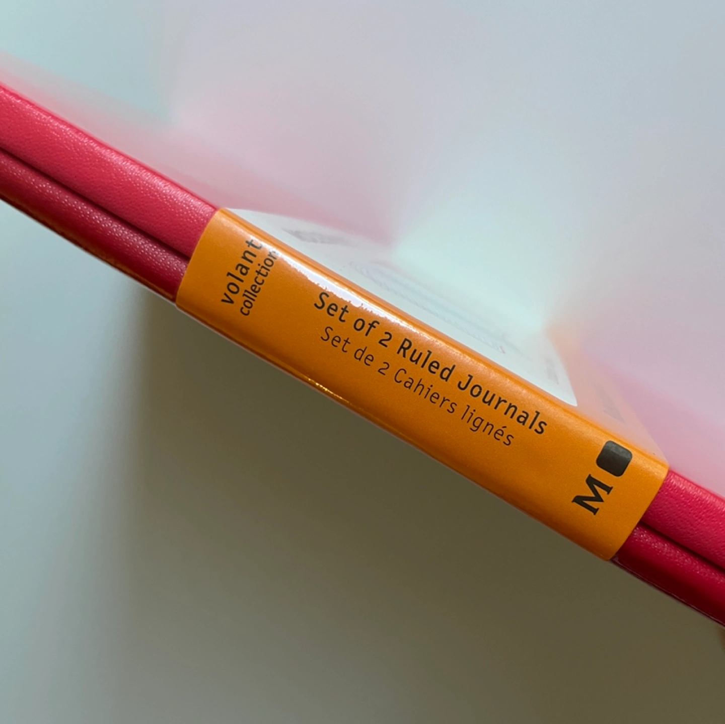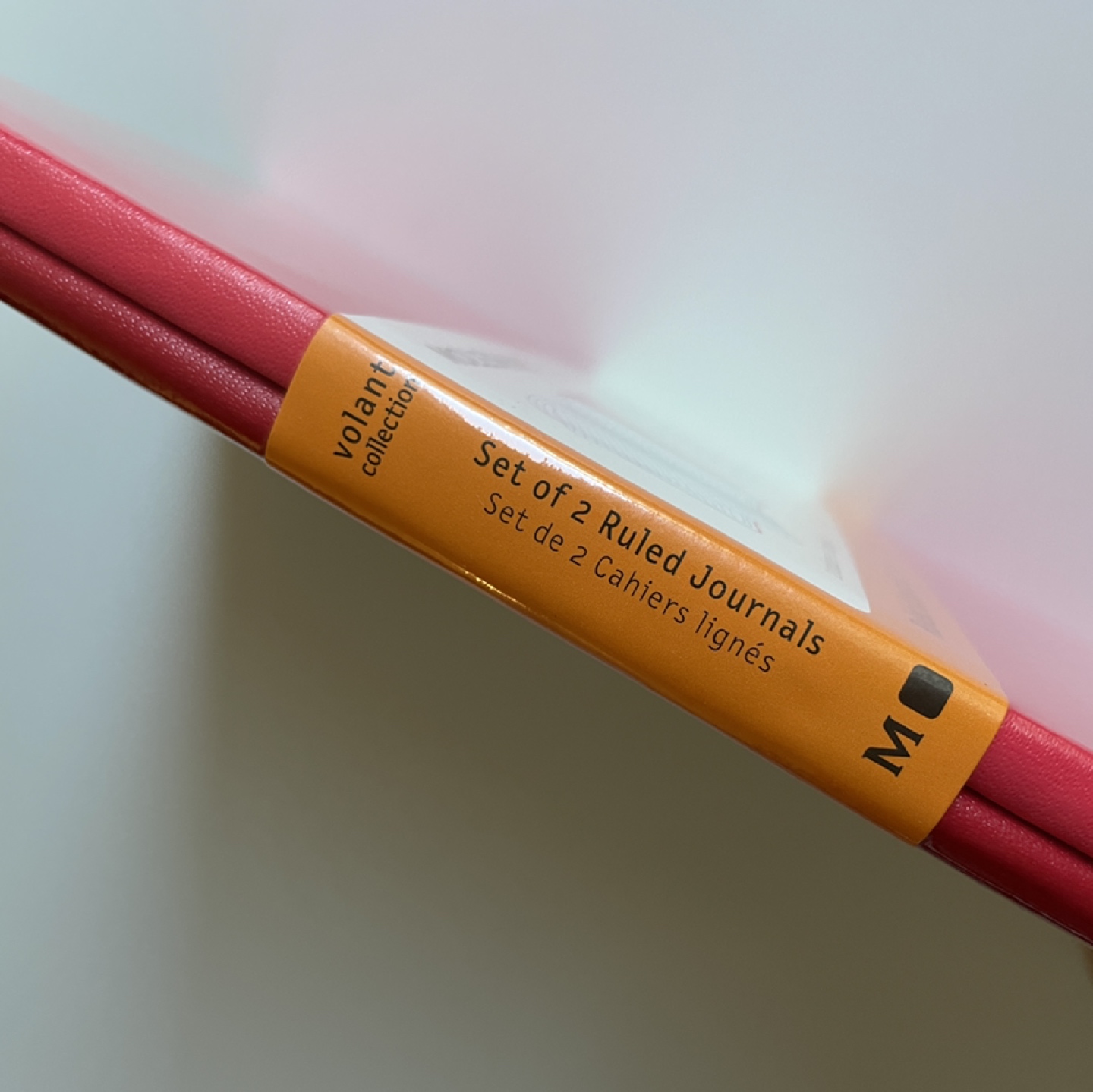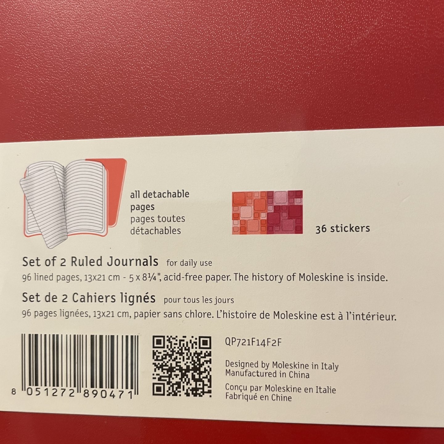 Brand new, sealed. A set of 2 lined journals in light red and deep red.