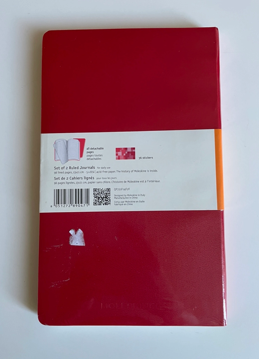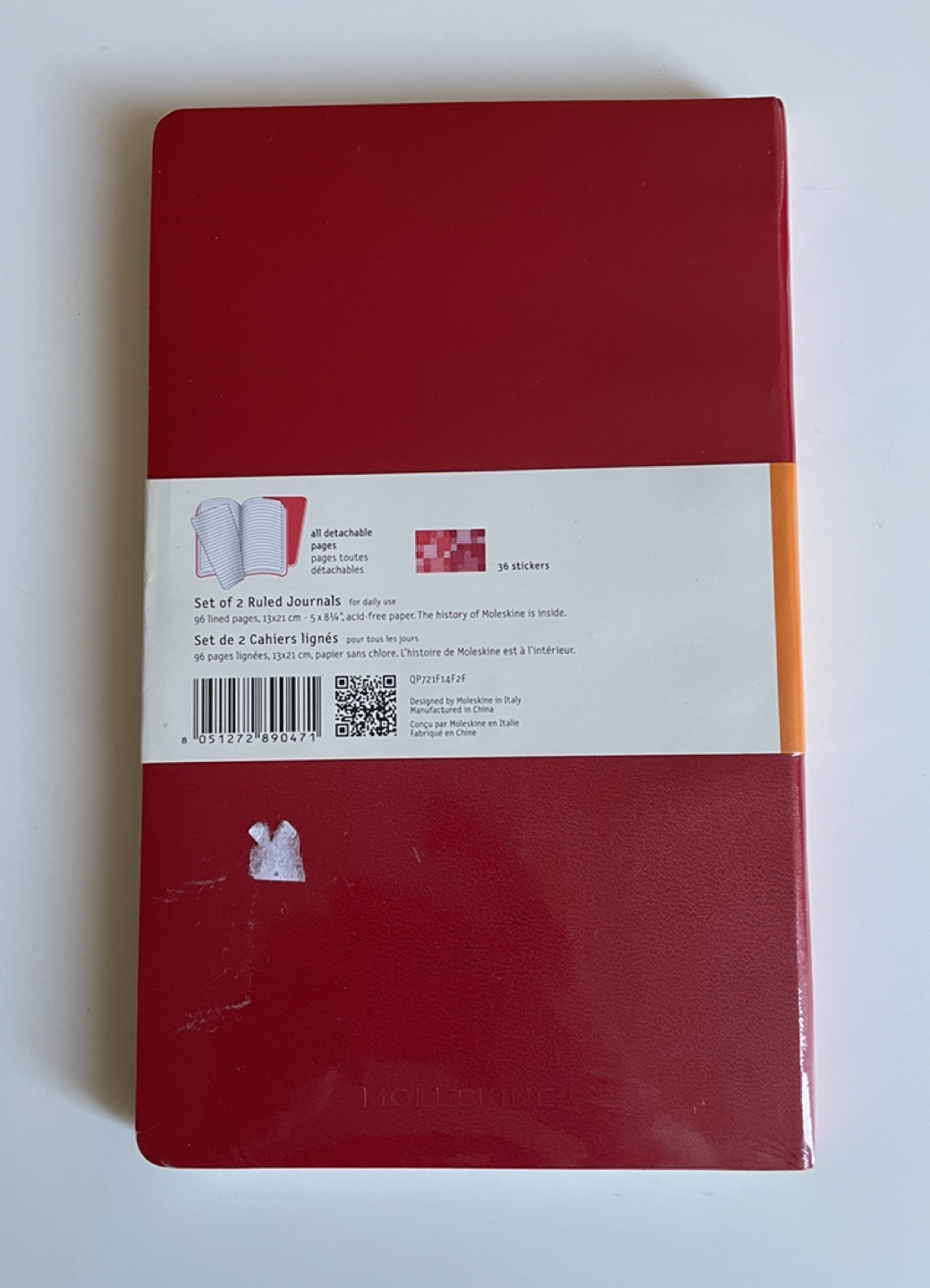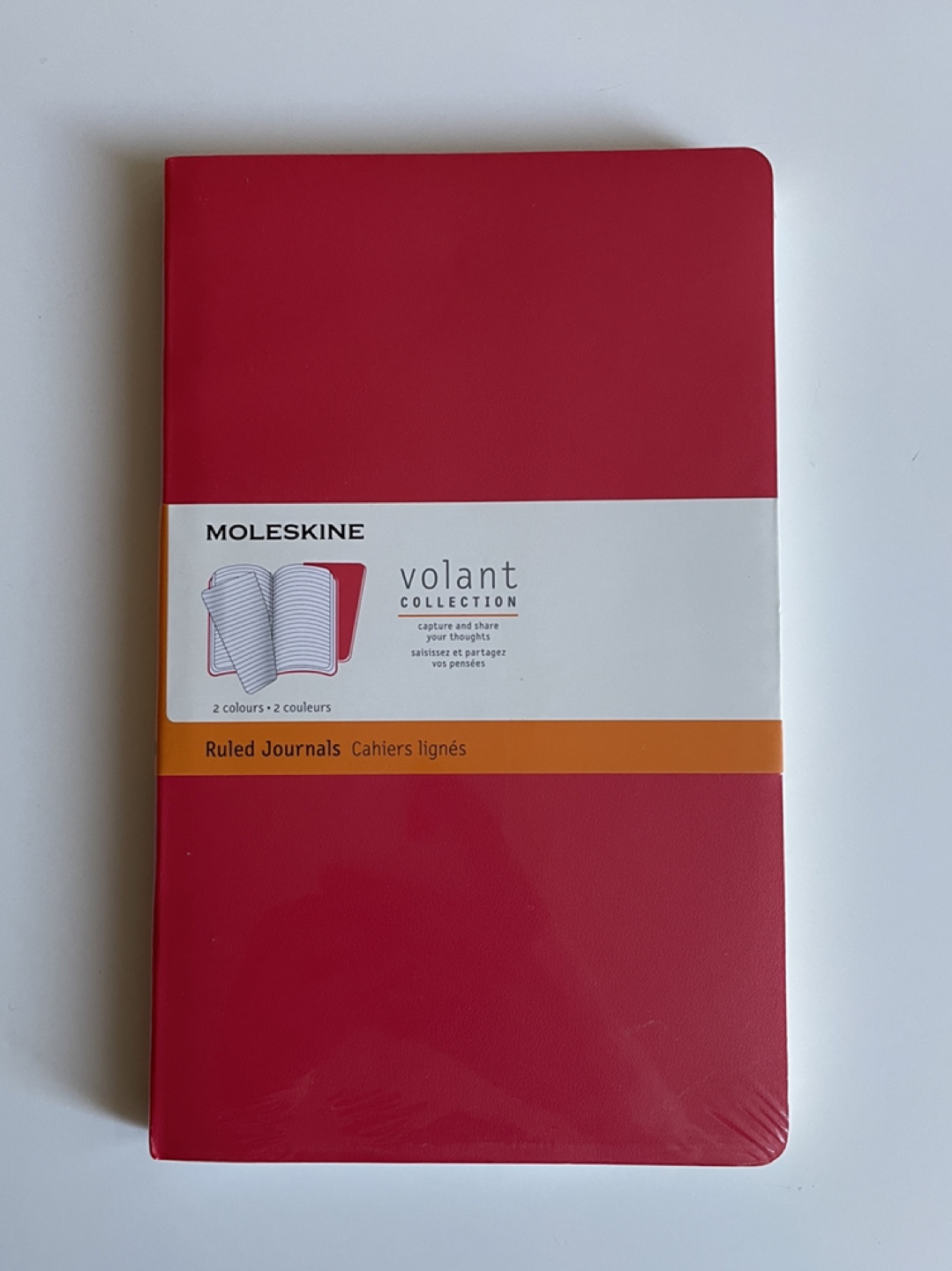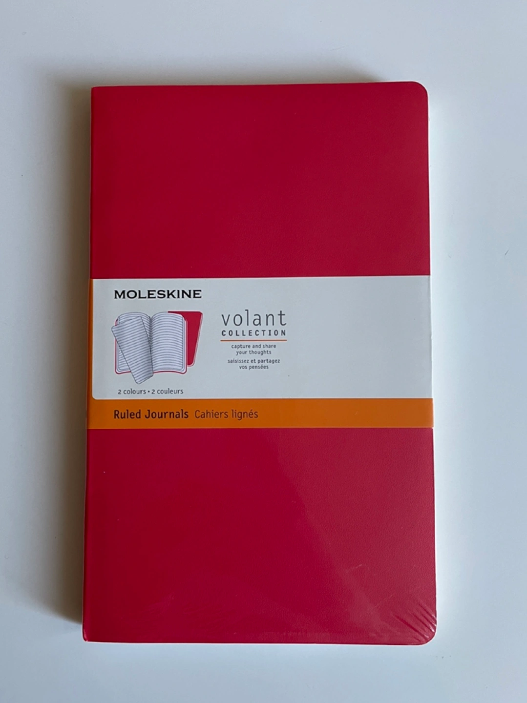 Brand new, sealed. A set of 2 lined journals in light red and deep red.