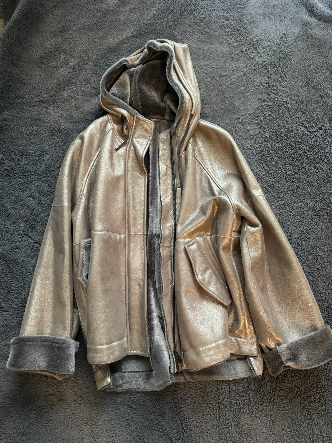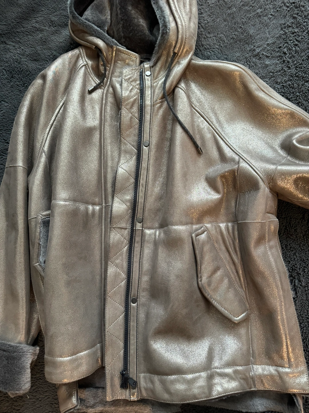 Selling a brand new brunello cucinelli metallic shearling hooded jacket