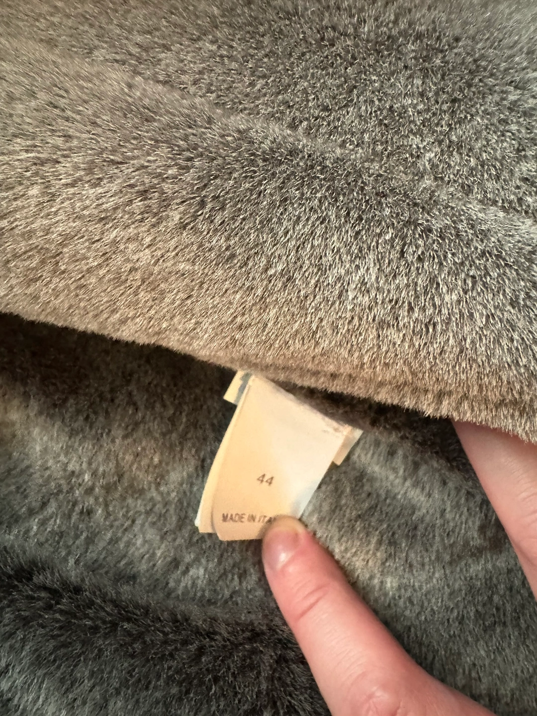 Retail shown here: https://marissacollections.com/products/metallic-shearling-hooded-jacket