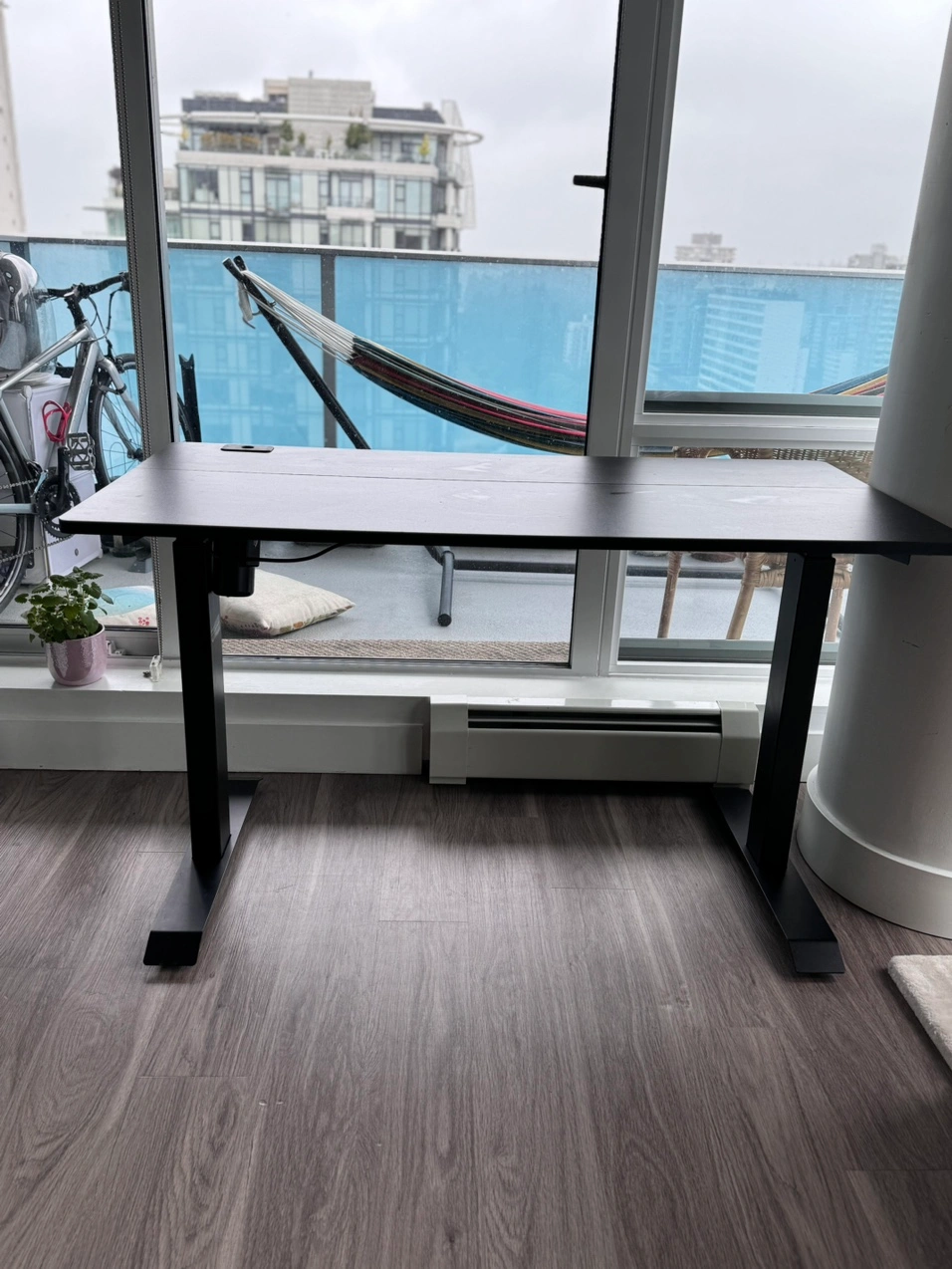 Large sturdy table that used to be height adjustable. If you can make it work then bonus you have a height adjustable table. Pick up note- it’s heavy so you’ll probably need another person to help carry this out.