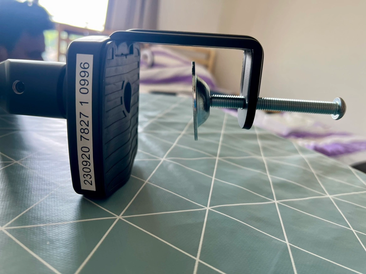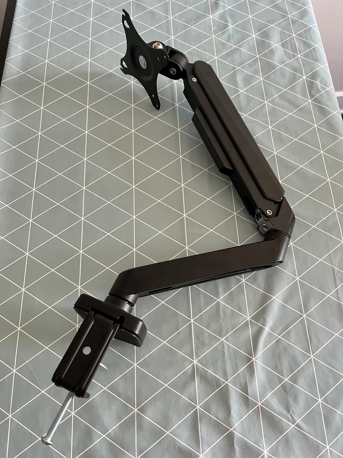 Vevor brand single monitor arm. No issues with the product at all. Still has original packaging and comes with all the screws and inserts. It’s open box because I tried setting it, but I am more comfortable with the regular stand for my purposes. It’s past return window.