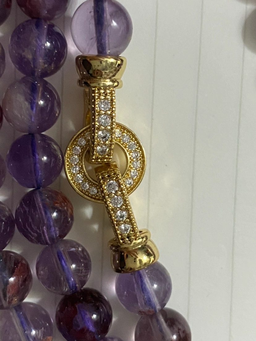 Gorgeous clear amethyst chains with golden clasp covered with small cubic zirconia crystals.
