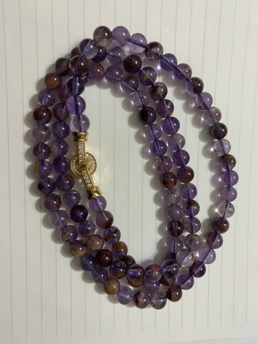 Long amethyst chain with delicate clasp.