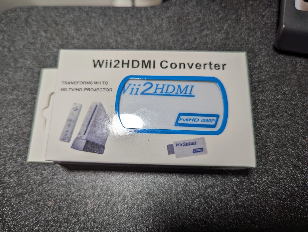 it comes with a Wii HDMI converter that I bought myself and it comes with his box it's new