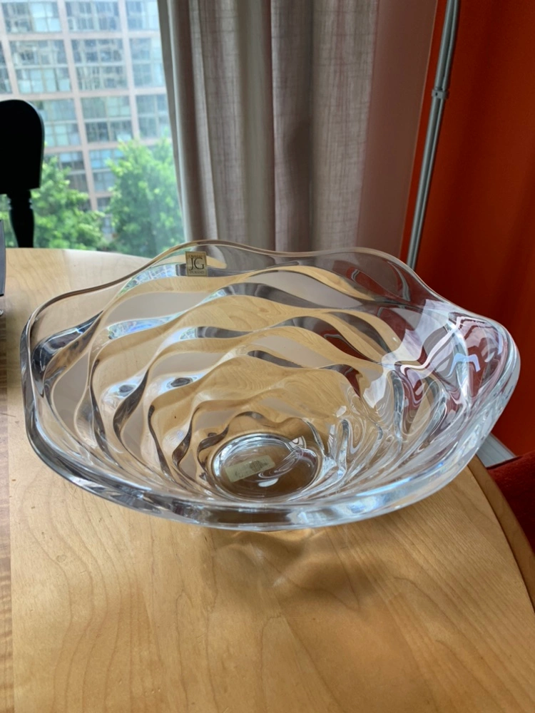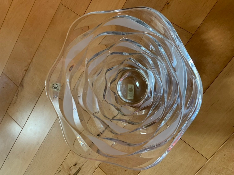 Vintage Cristal D’Arques Crescendo Large Centerpiece Bowl, JG Durand Made in France Crystal Serving Bowl, Frosted and Clear Console Bowl