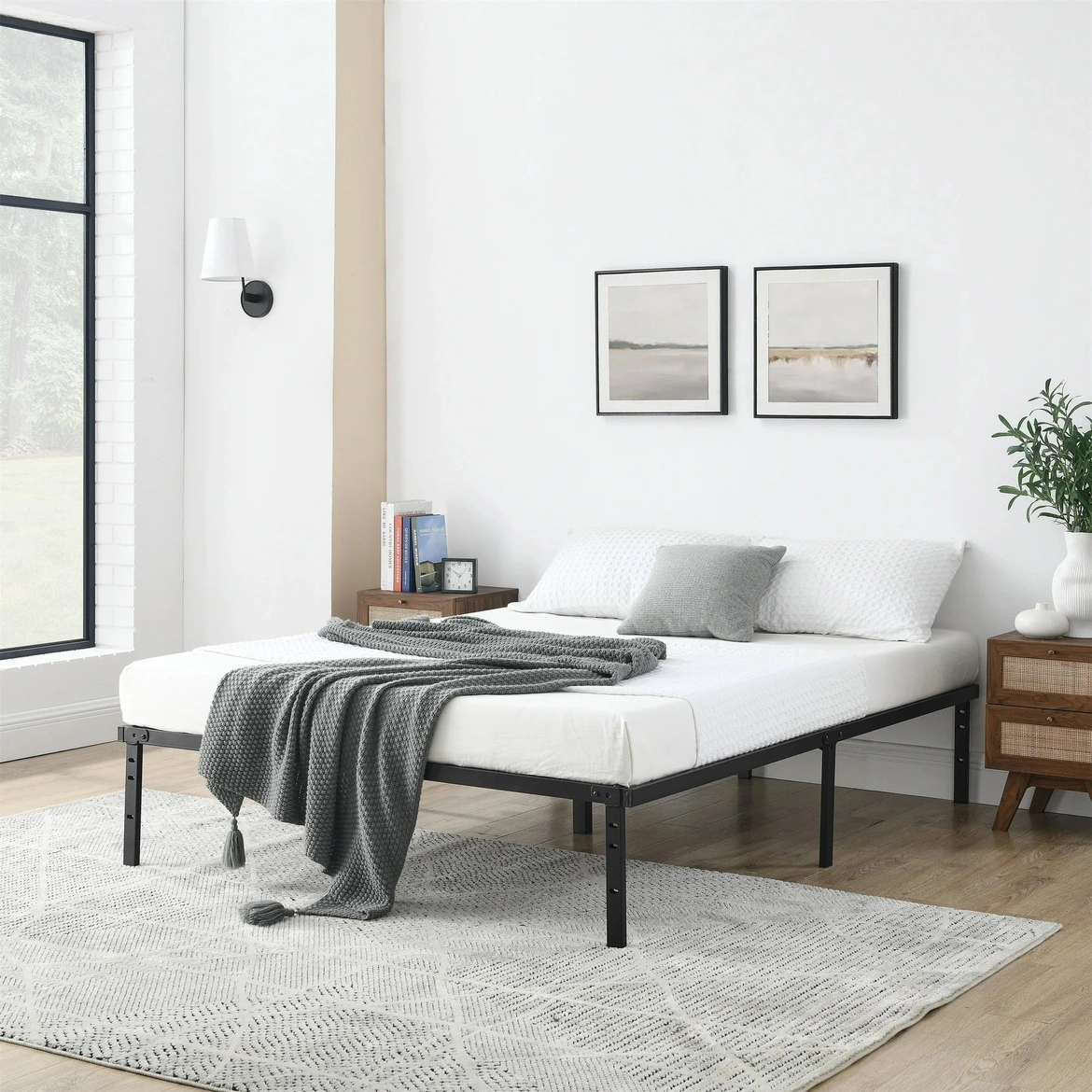 - Dimensions14" Heavy Duty Slat Bed Frame, Black Steel, Queen