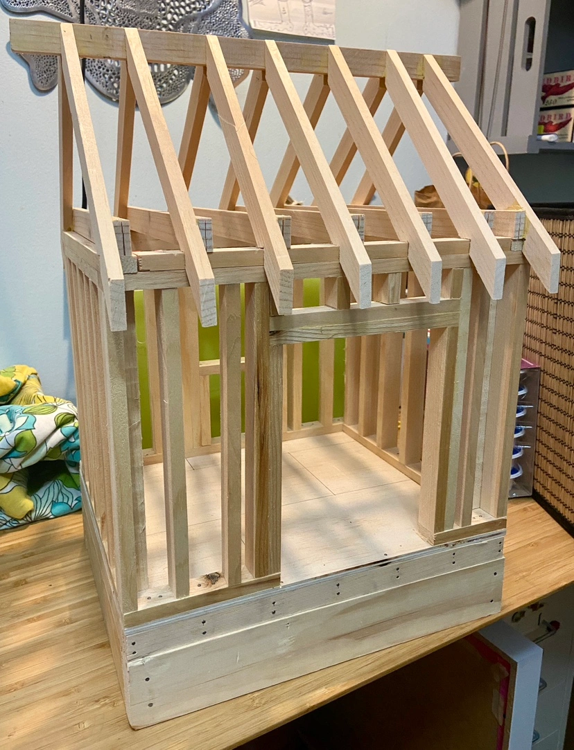 Handmade in a cabin building class, from pine and nails. Could be useful for anything from a bird house to kindling. I’m proud of it and had a great time learning while making it, but don’t have the space to keep it. Please make it useful!