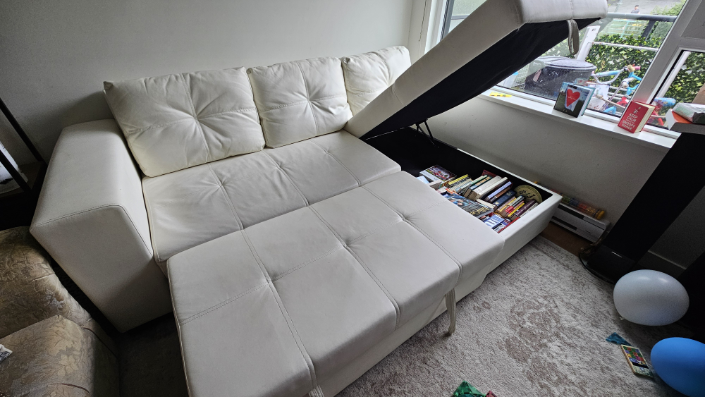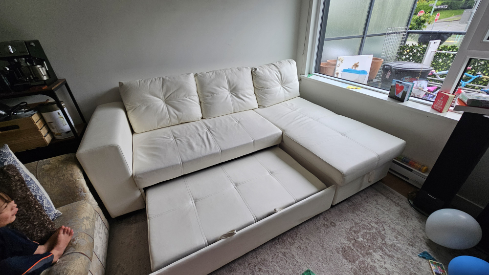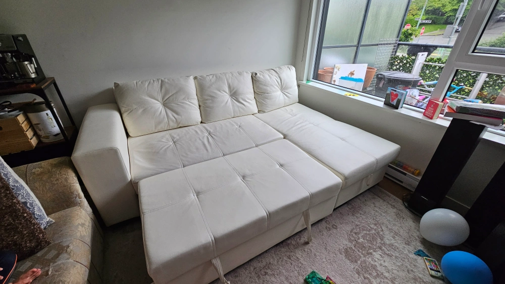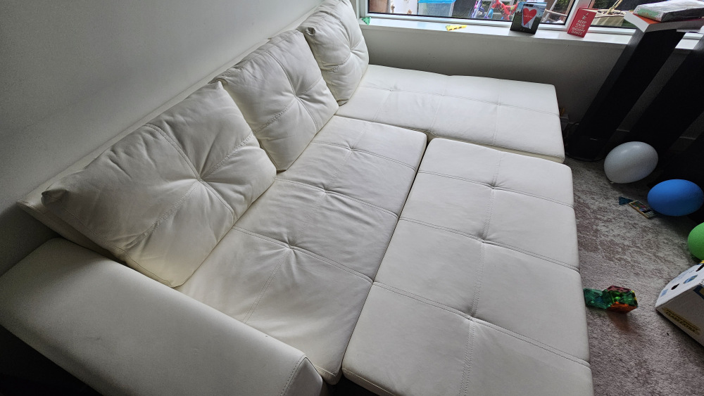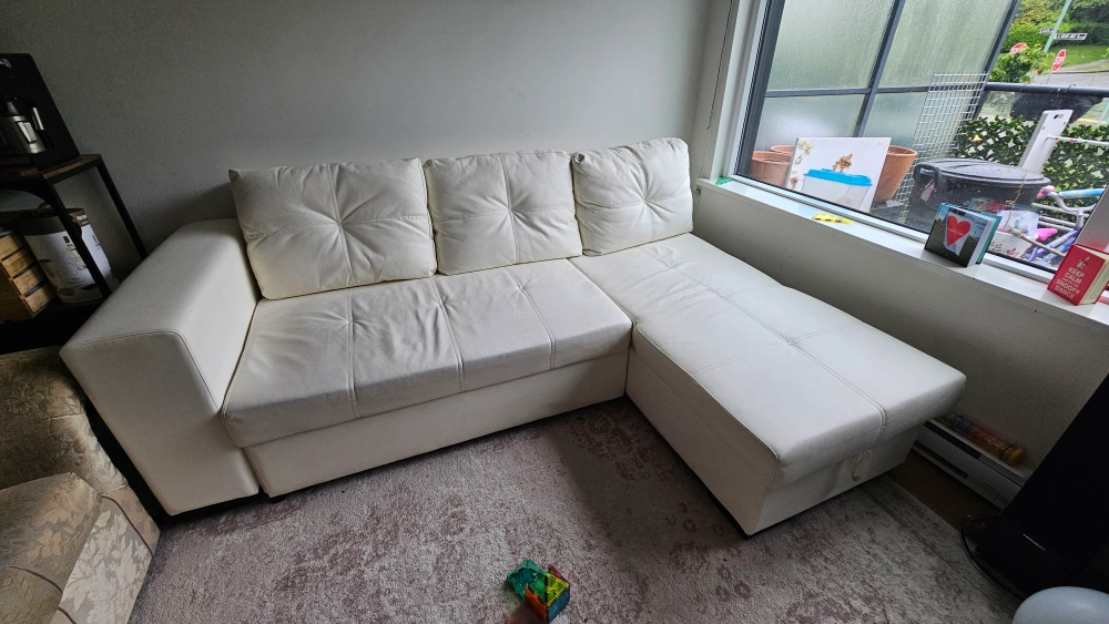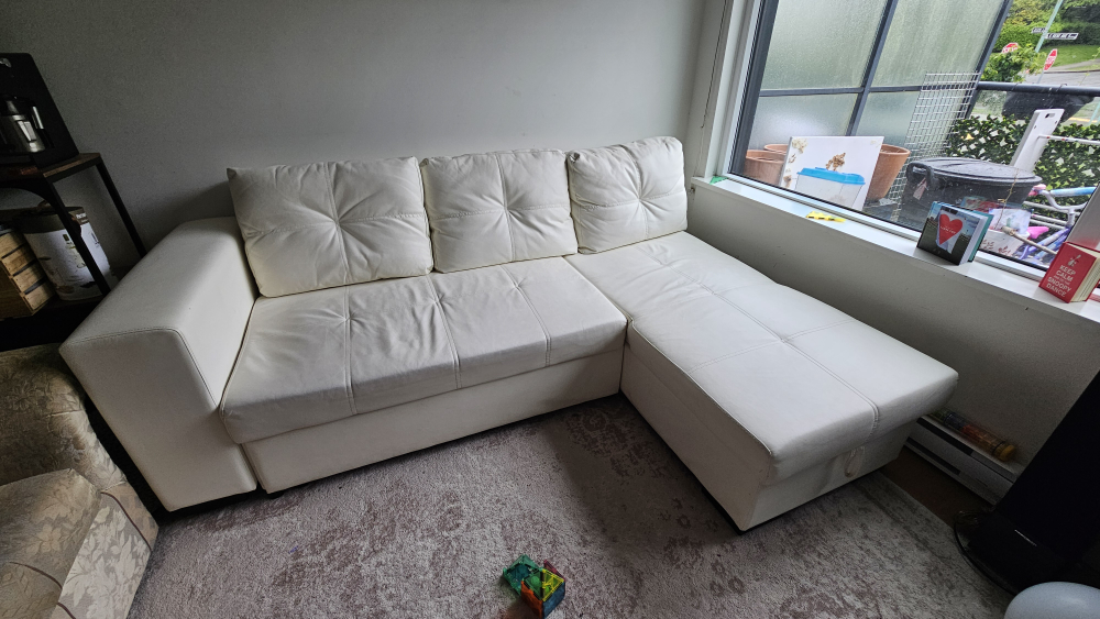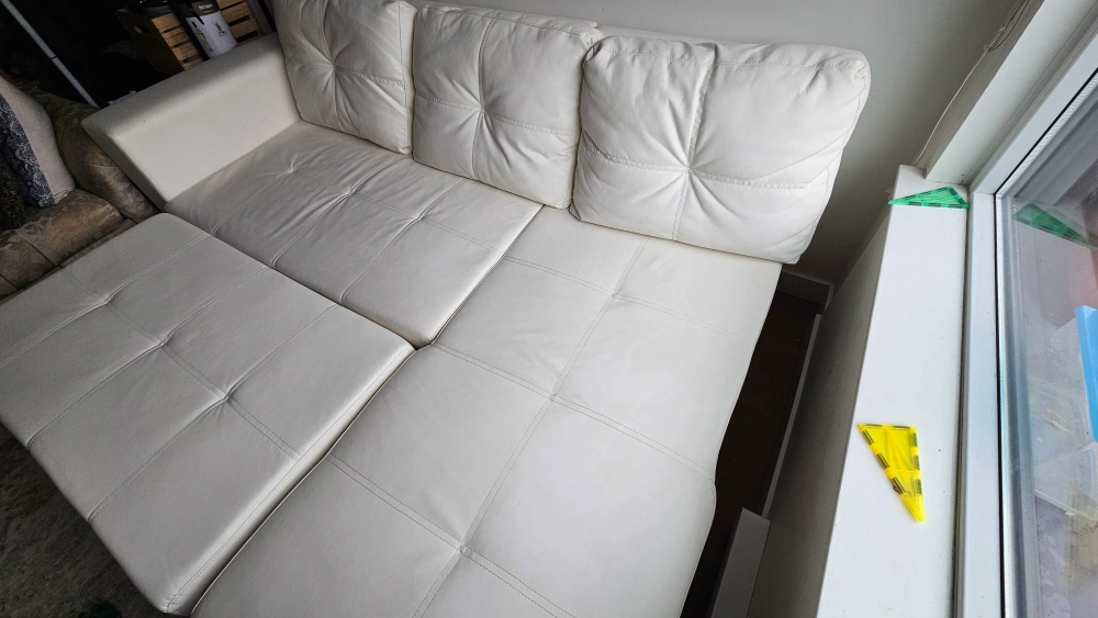 faux white leather couch