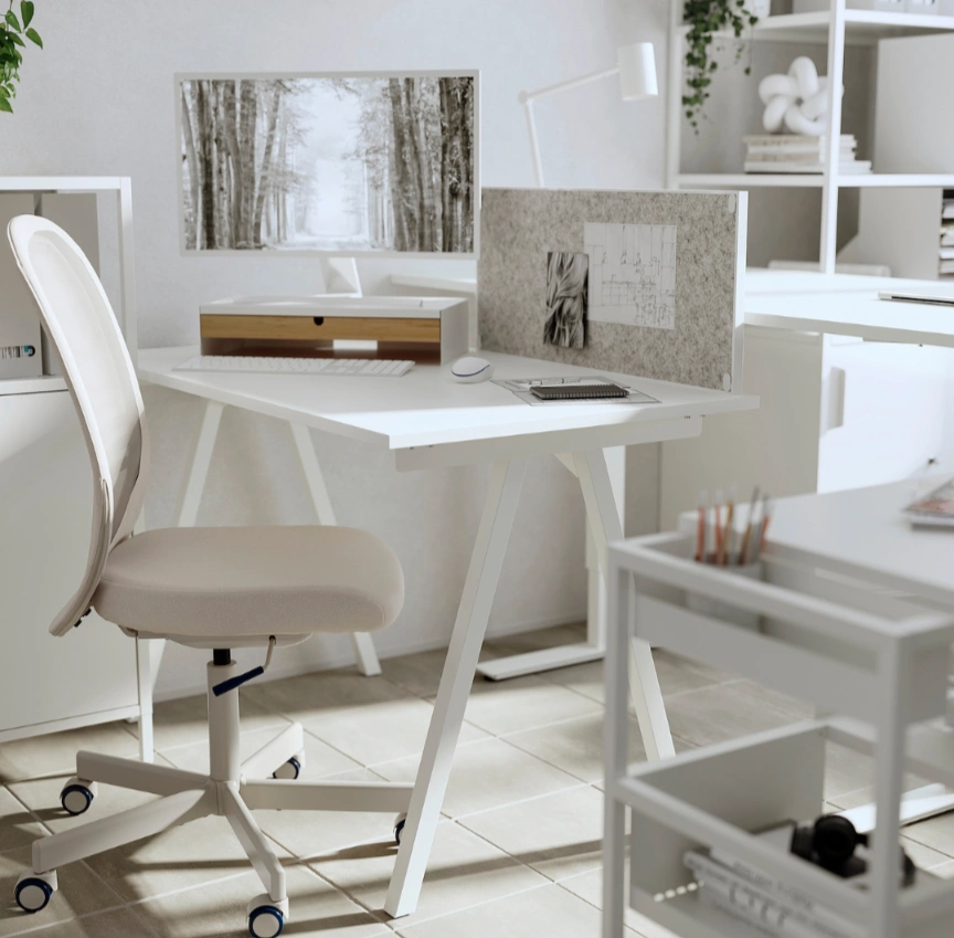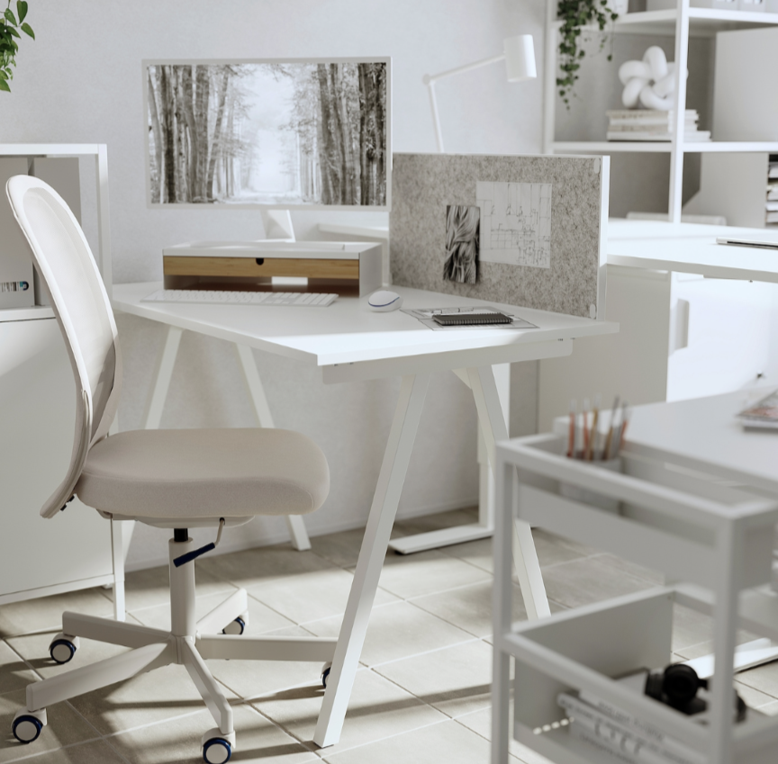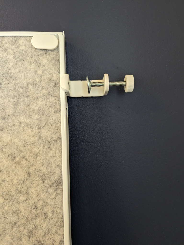 Mounted with screws on bottom to desk (DOES NOT damage the desk itself); can act as divider for privacy as well
