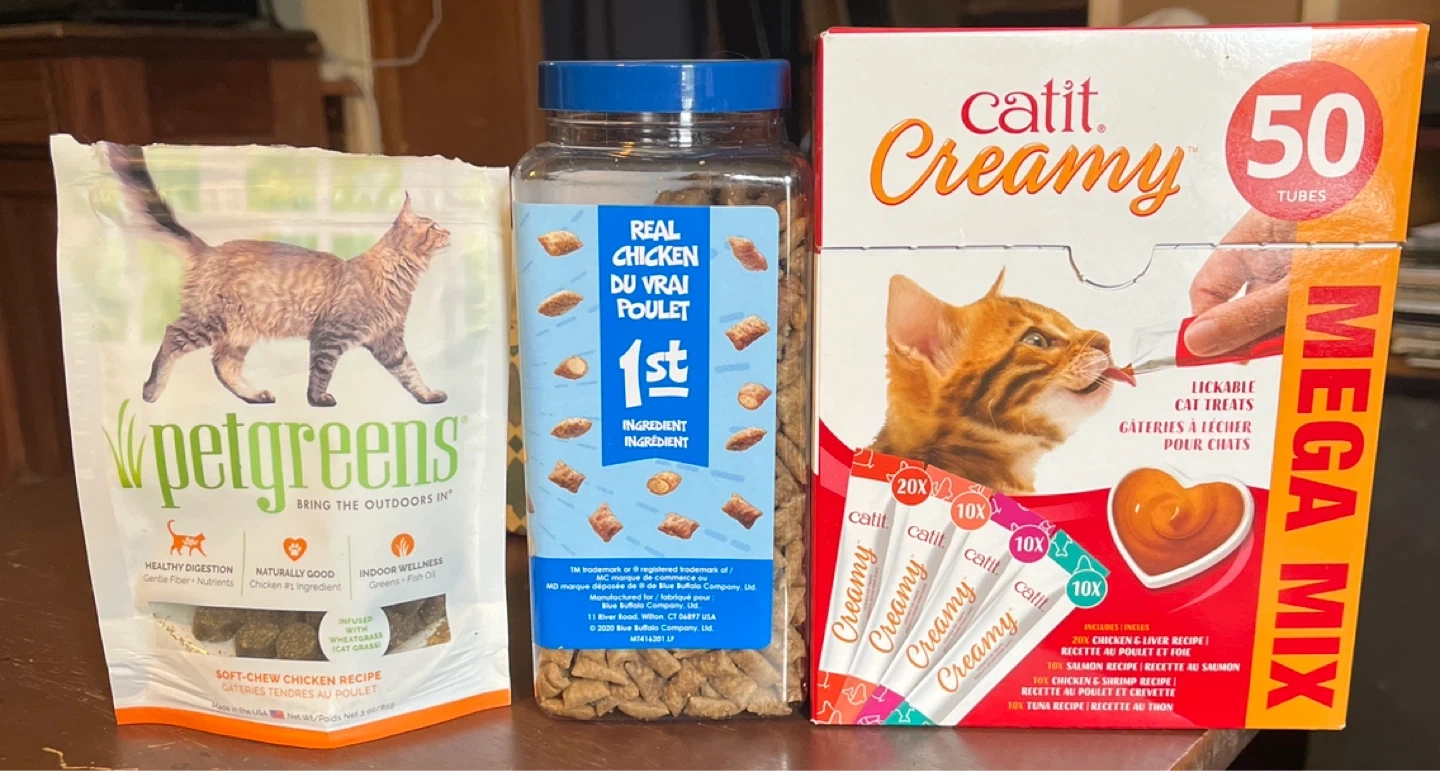 These foods / treats have kept them healthy and switching could cause problems. Instead of wet we use the simplest toppers, add water and call it soup. These treats are the ones all three of them like so we focus on those. We avoid larger animals (4 legged) food so we can control weight better. And we keep down fish as they are all male and working on decreasing the chance of urinary crystals.
