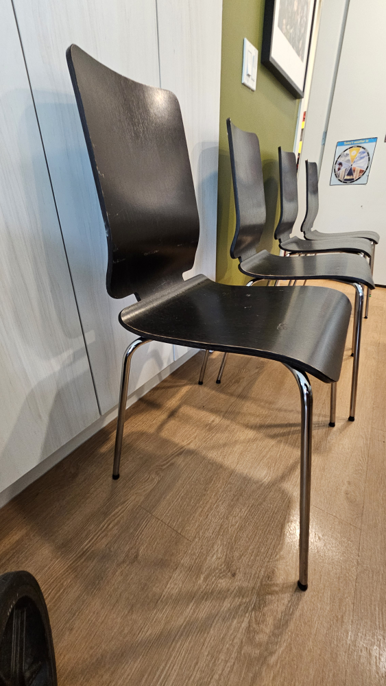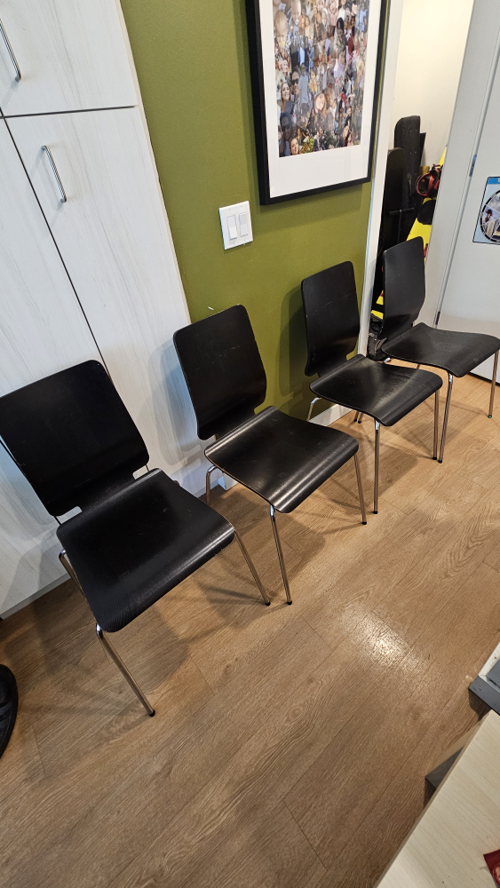 4 sturdy black & silver chairs... just needs a good clean but they're great and easy to even store if you want to use for extra chairs for when guests come over