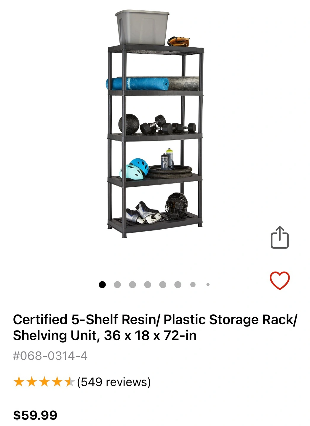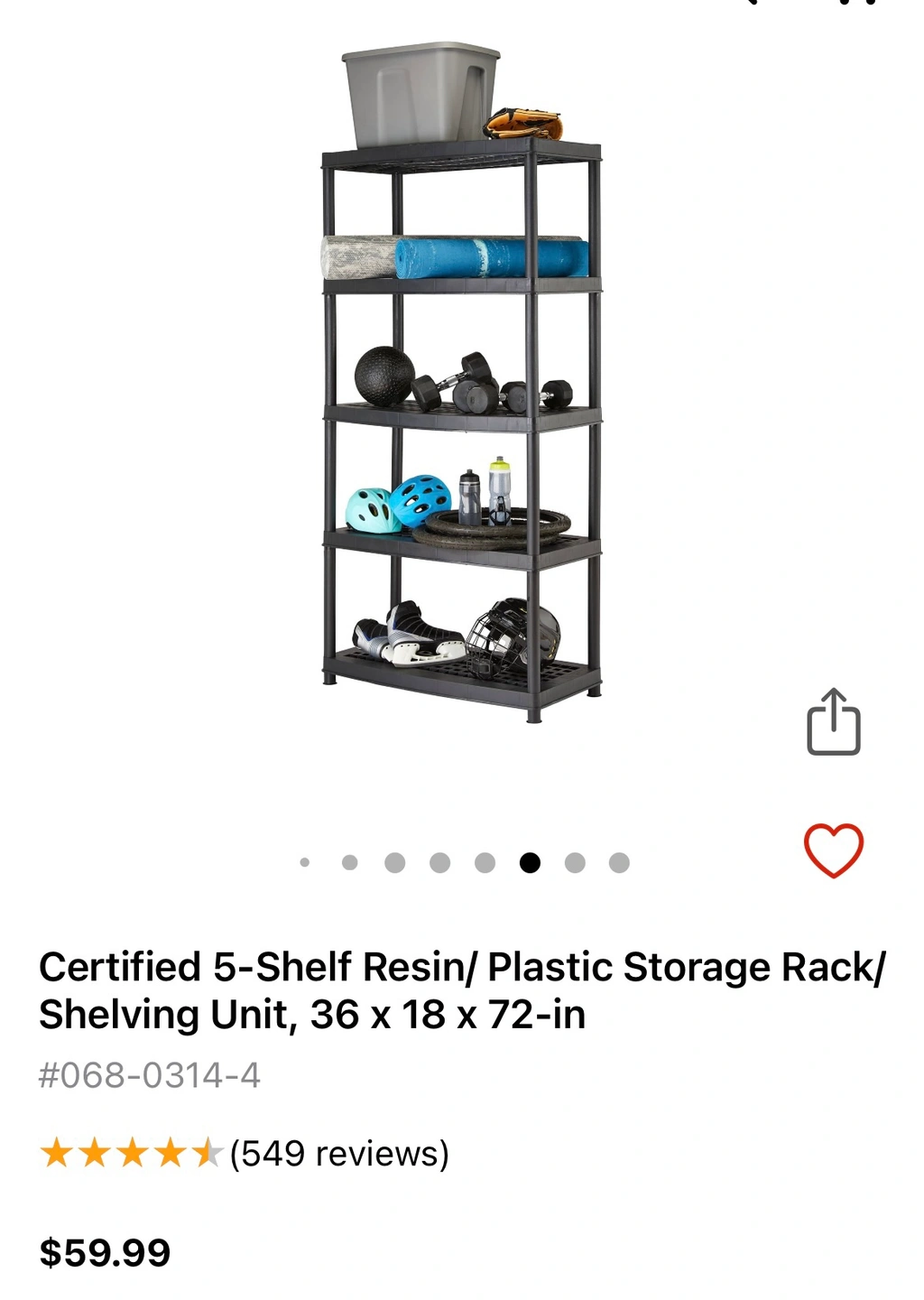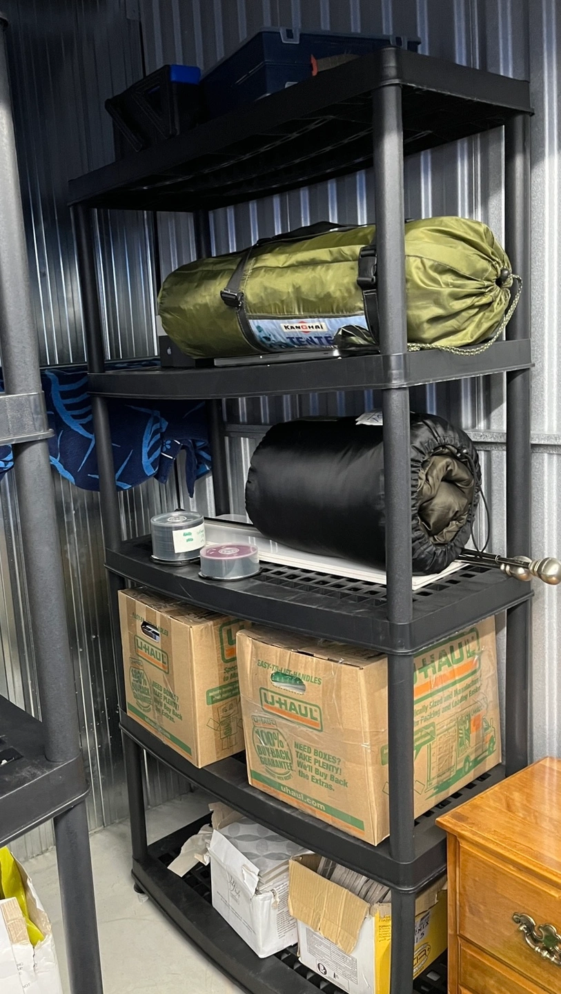 5-shelf resin Storage shelves (4 avail) - pick up Wed afternoon