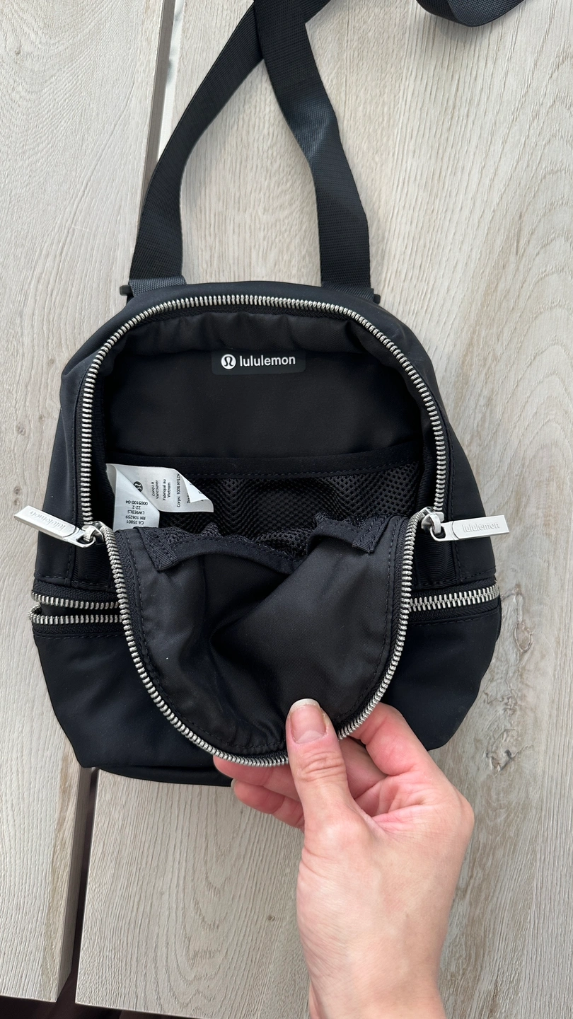 Lululemon mini backpack. Wearable in two styles: as a backpack, or as a crossbody bag.