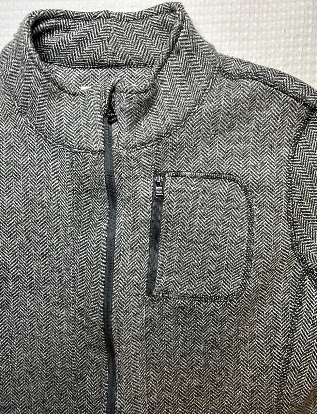 It features a herringbone pattern and a full zip closure. There's a zippered chest pocket and a patch pocket. LN