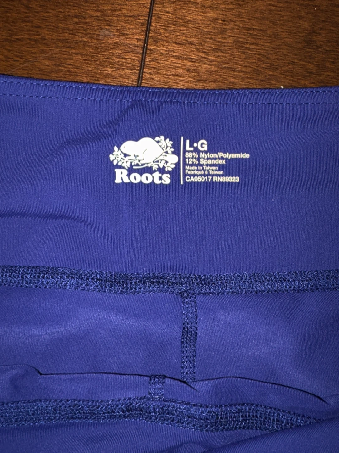 Roots athletic pants in a vibrant blue colour. They're made from 89% Nylon/Polyamide and 12% Spandex for a comfortable stretch. Made in Taiwan. These pants would be useful for workouts or casual wear.