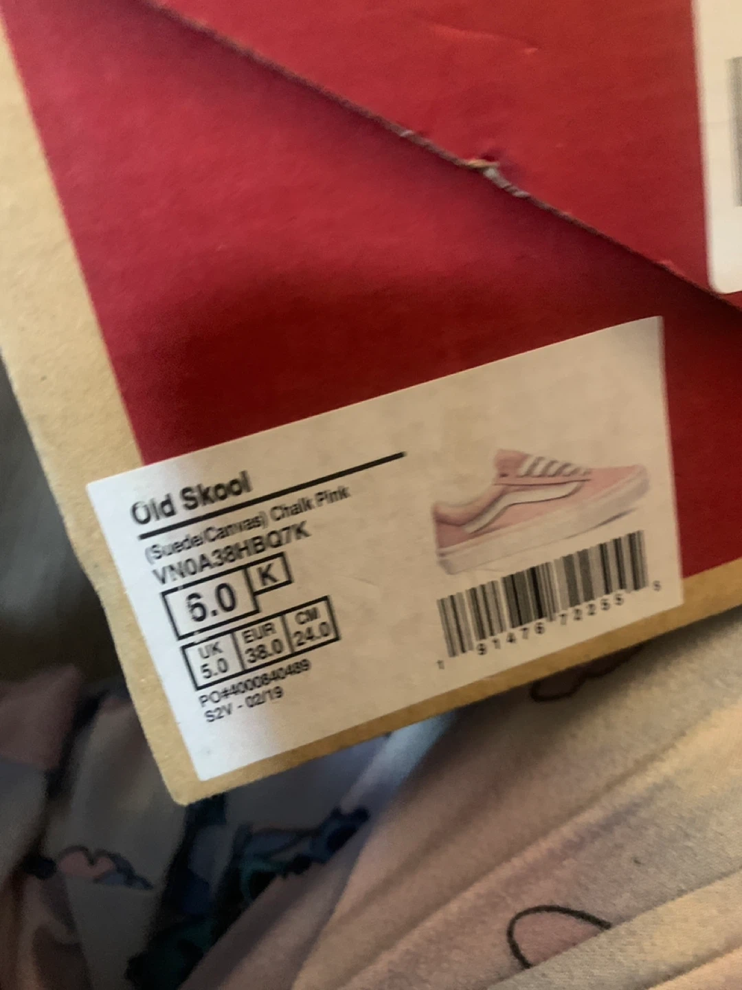 These are Vans Old Skool sneakers in a lovely chalk pink colour. They're made with a mix of suede and canvas materials. Perfect for a kiddo needing comfy and stylish kicks!