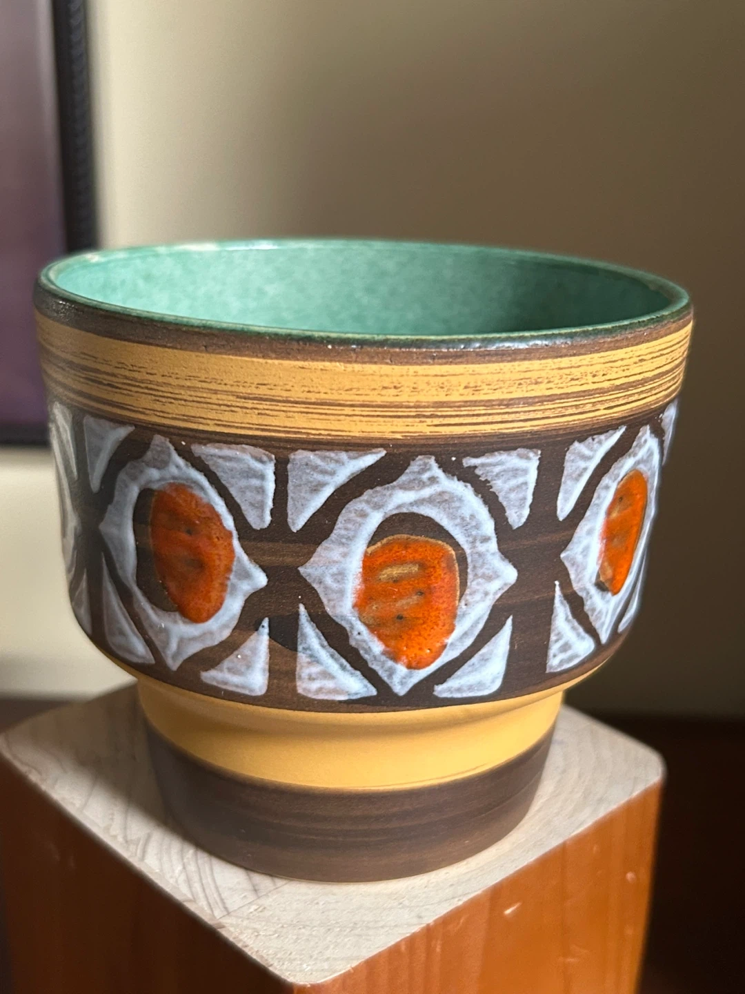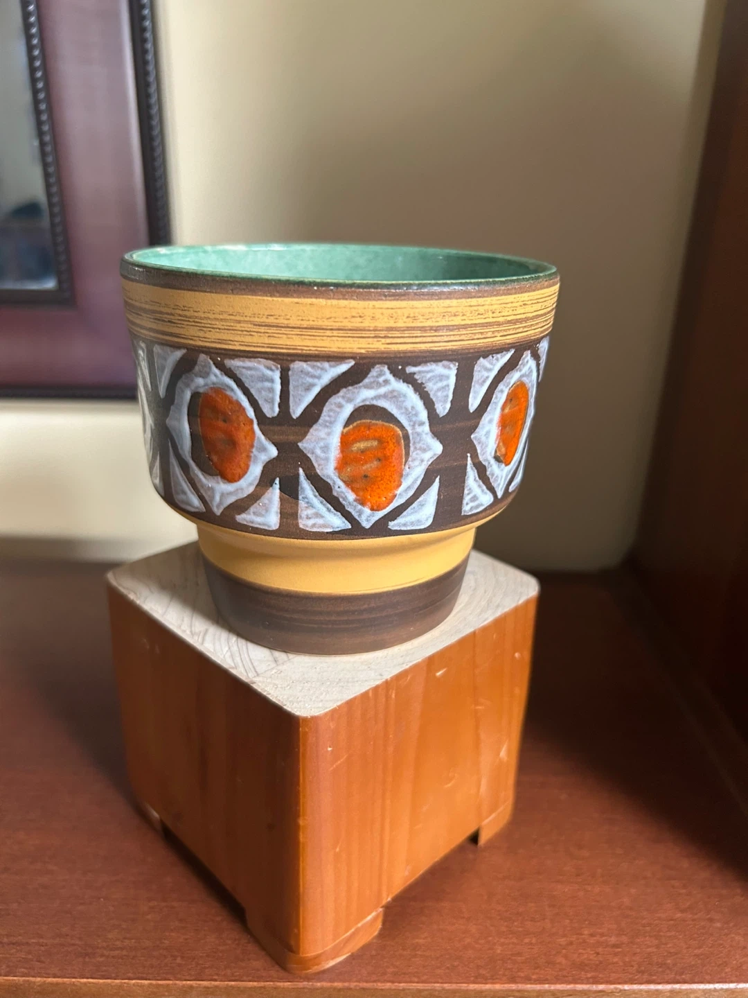$22 orange Vintage Mid Century Modern Pottery Planter- BPF Heffen Belgium West German MCM antique $22 Flexible re days time for pickup Elmsdale Road Donlands O'Connor East York M4J 3m3 Don Mills south exit off DVP Wonderful Vintage Mid Century Modern MCM Planter Flower Pots succulent vase catch all Not quite far lava but nice pops or Orange red and hand decorated Made by BPF Heffen - Belgium Diameter: 5" Height: 4.25 inch hand decorated Very Good Vintage Used Condition but there's some wear / small blemish on inside rim - very minor Heavy Duty, Textured, Well Made Pottery Great MCM Design