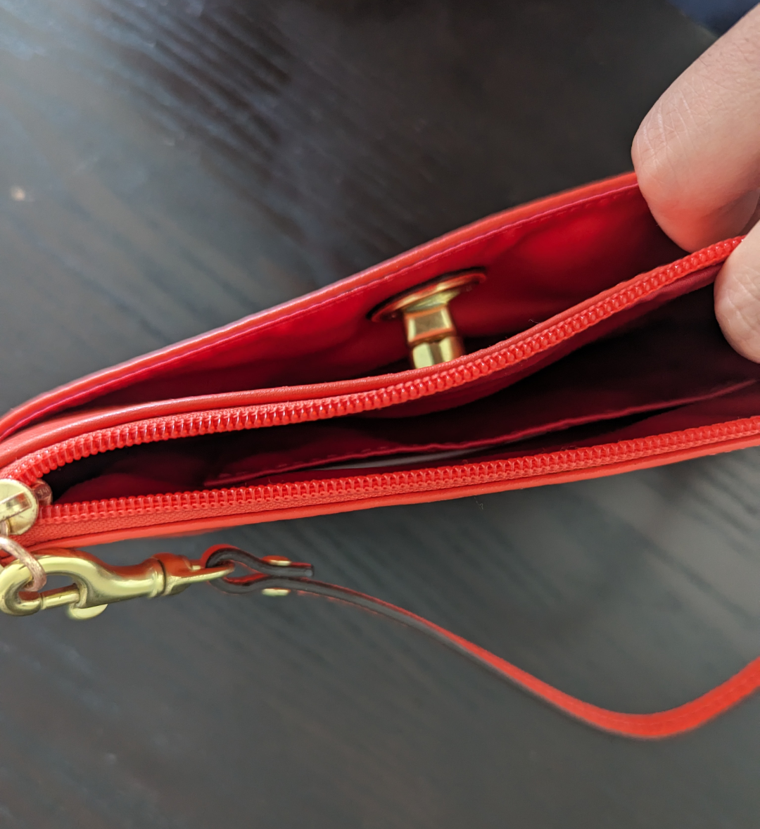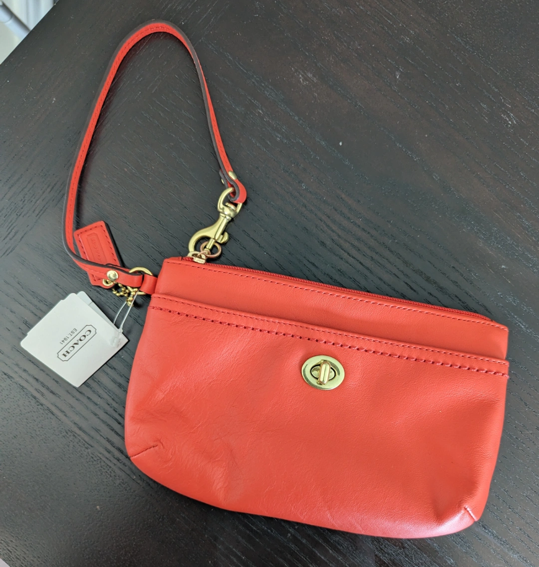 Brand new unused COACH Campbell Leather Medium Wristlet Bag in Hot Orange.
