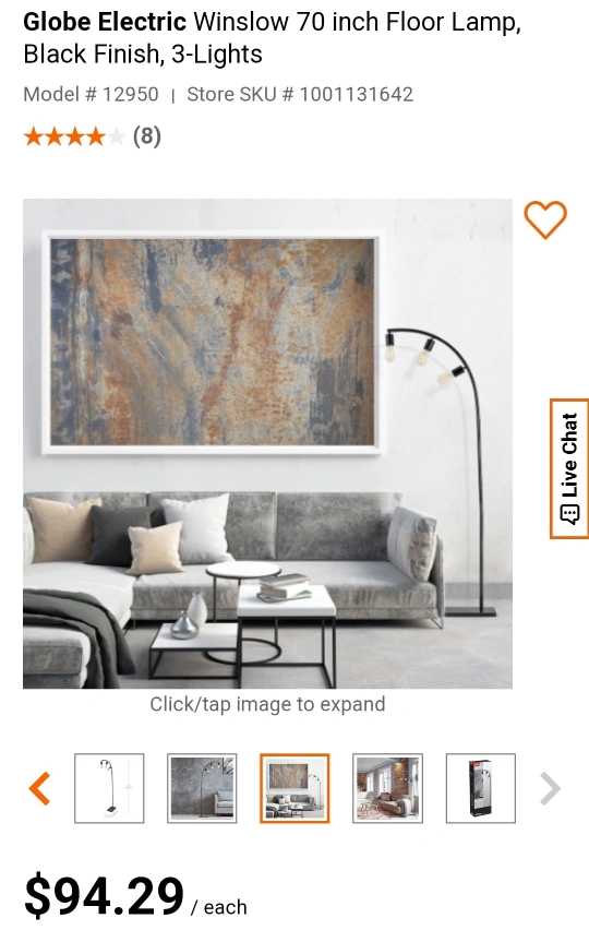 I'm selling this black floor lamp because I don't have a use for it anymore. I think it may be from Home Depot, selling for $94 (screenshot included in photos).