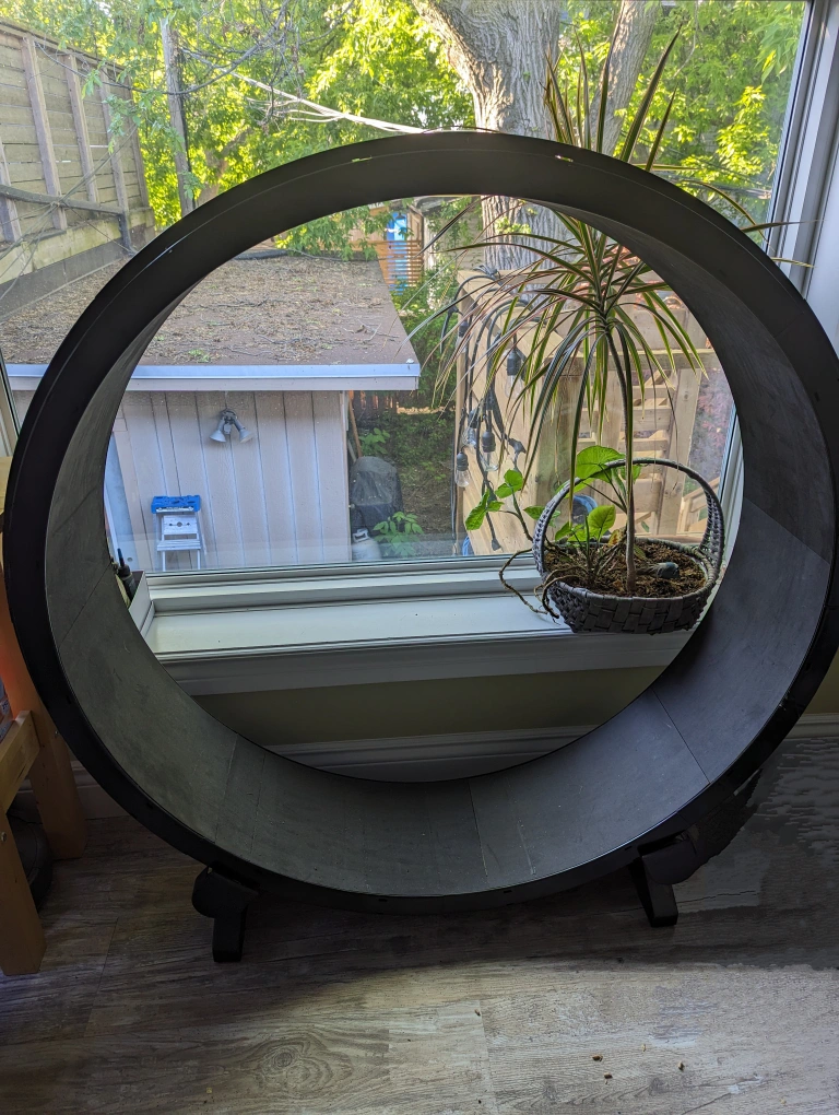 One Fast Cat brand cat wheel. Give your cat some outdoor space inside! Barely used - works great! I bought this for our cat but she never used it.