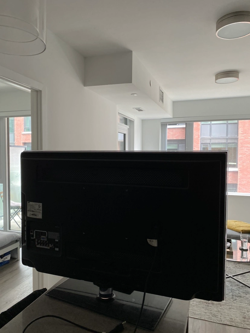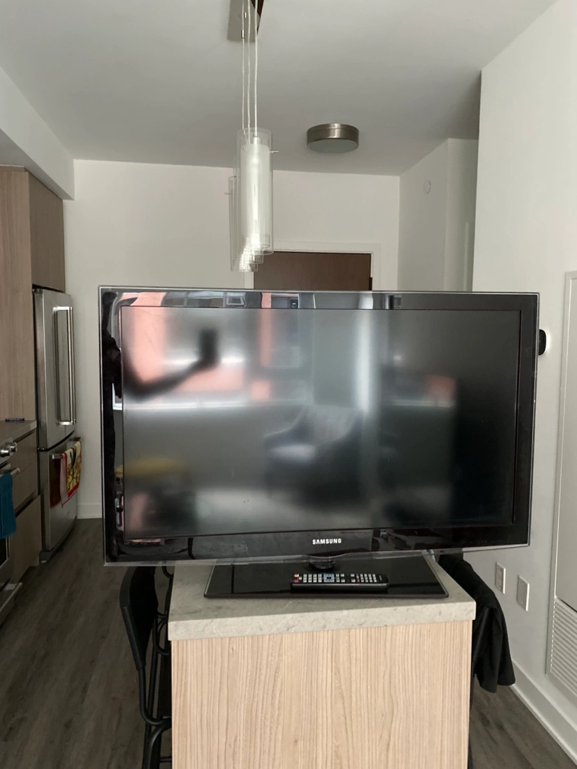 42” HDMI enabled Samsung TV with stand. Works perfectly. Just moved and don’t have the space. Not smart but Amazon fire stick compatible. Downtown collection required.