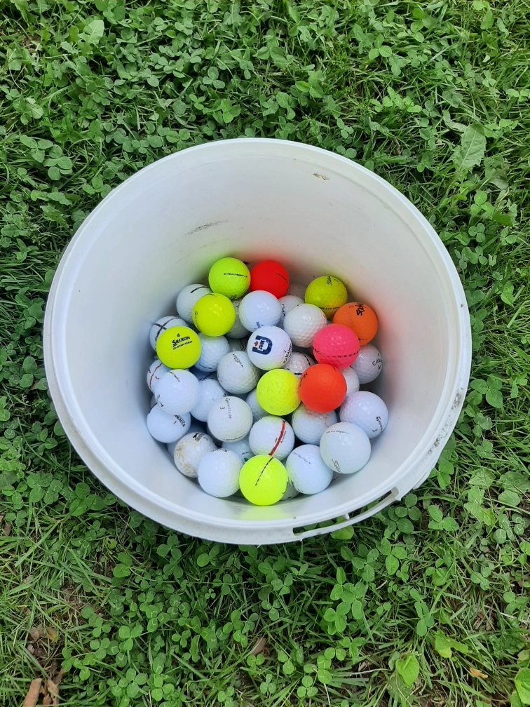 65 golf balls washed and dried. 55 are white mostly Callaway and Titleist, 10 are bright coloured yellow, red, orange, blue/yellow