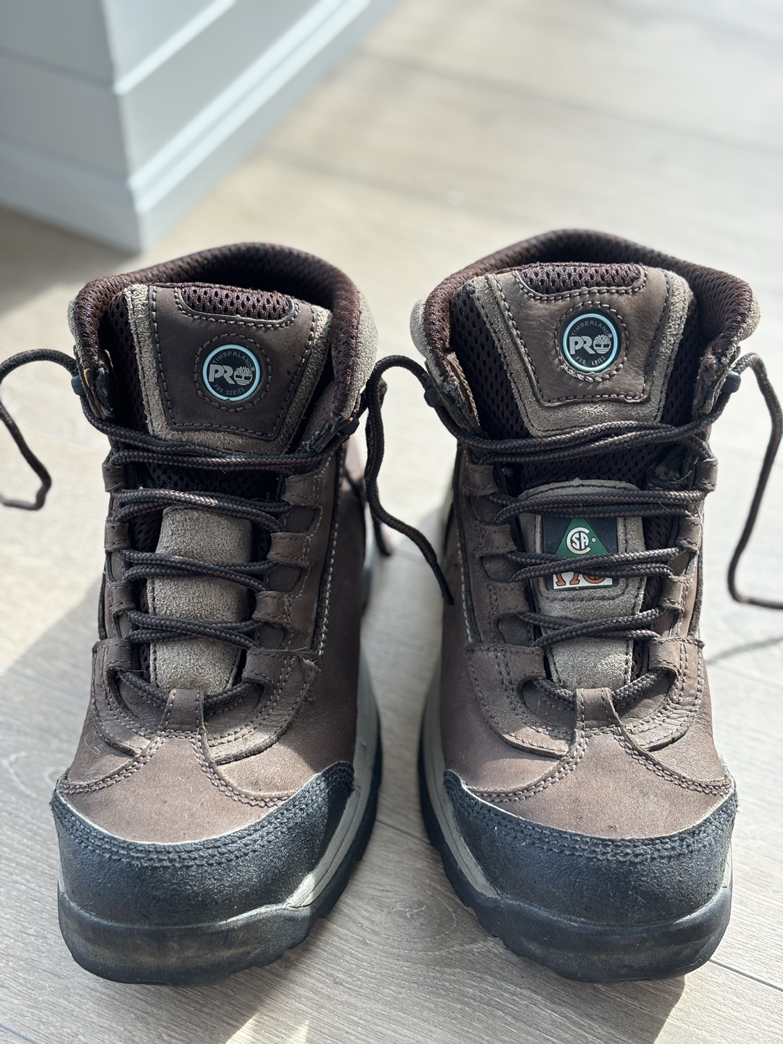 Timberland safety booth with steel toe, with green safety triangle certified, size 8 for women,