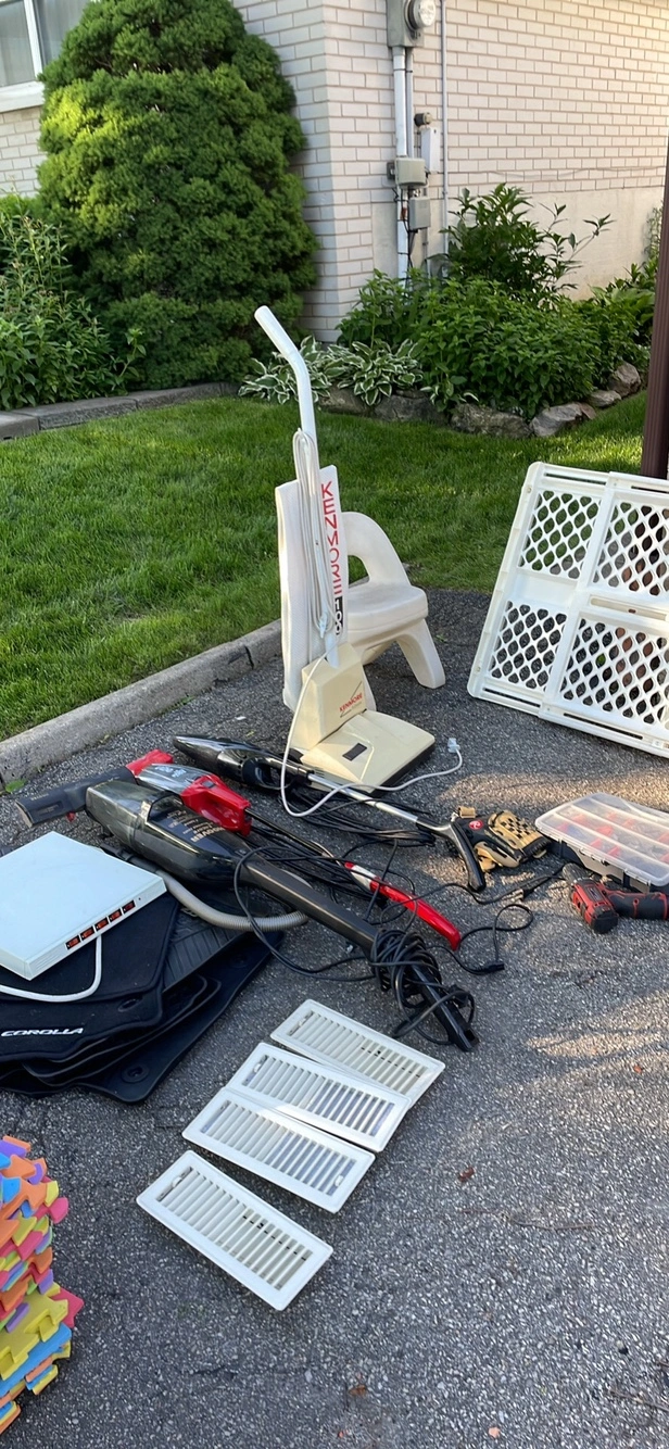 Over 1000 plus items for sale. , lawn mower, tools, vacuums , garden tools, computer monitors , t v. Exercise equipments. ..