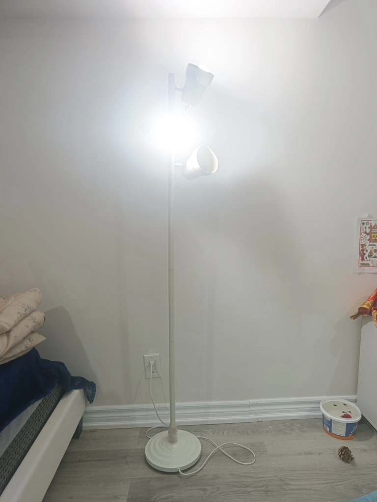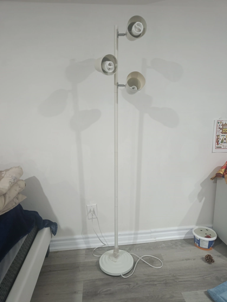 White Metal Floor Lamp, 3-Bulb, Works, Good Condition Overall, 70"