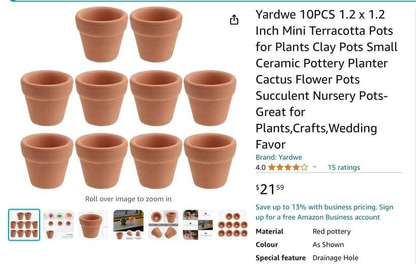Brand new box of 10 mini terracotta pots. Perfect for your miniature project or just potting some tiny succulents!