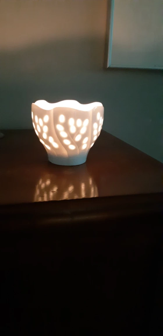 Made by Dansk International Designs Lovely delicate candleholder Includes one tealight candle Creates a warm glow (See photo #3)