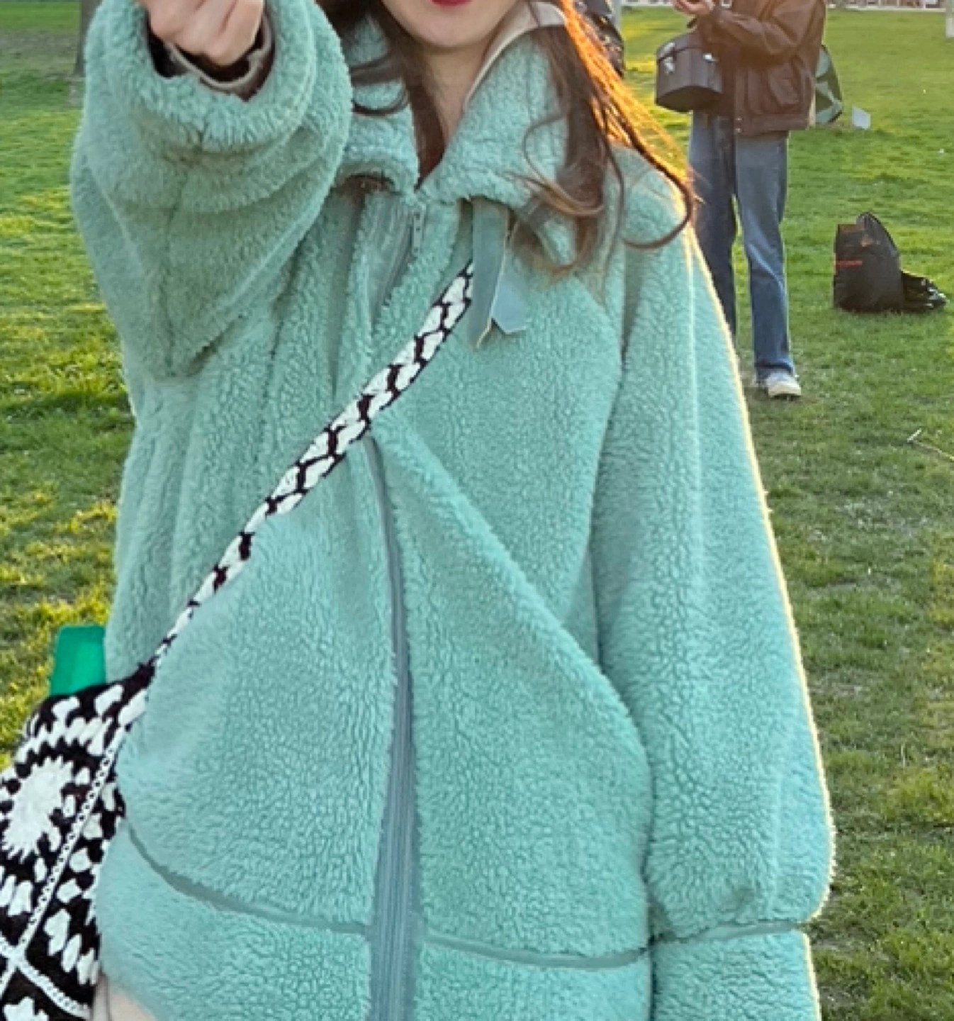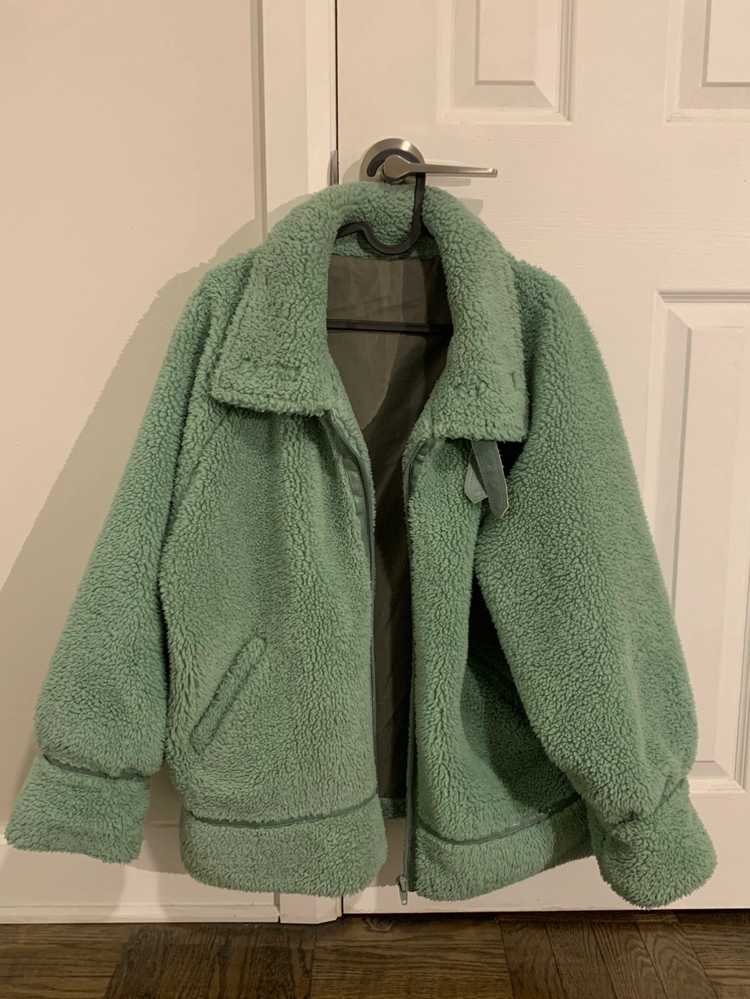 【LOOKS NEW】2 way Green (mint) fluffy high neck winter jacket