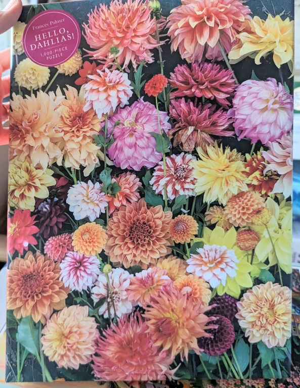 Excellent condition. Artisan puzzle brand. Hello dahlias. 1000 piece puzzle, complete, no missing pieces. Can meet near Empress Walk in North York. $5