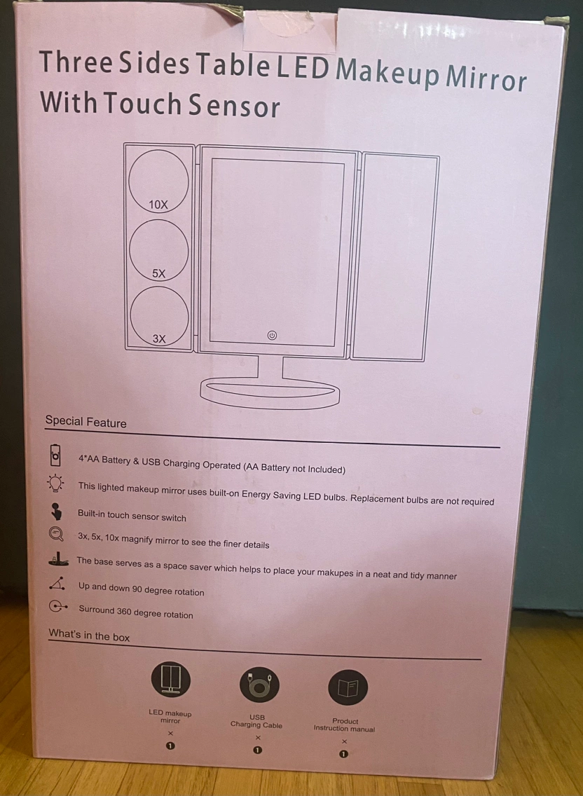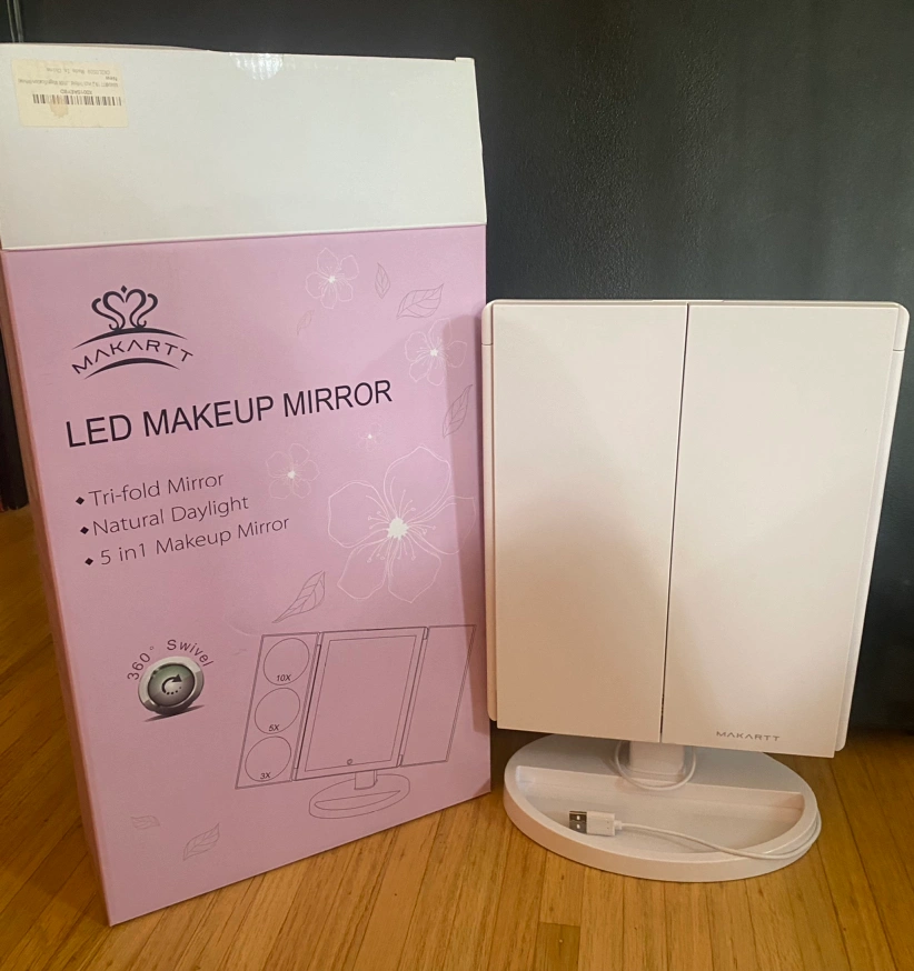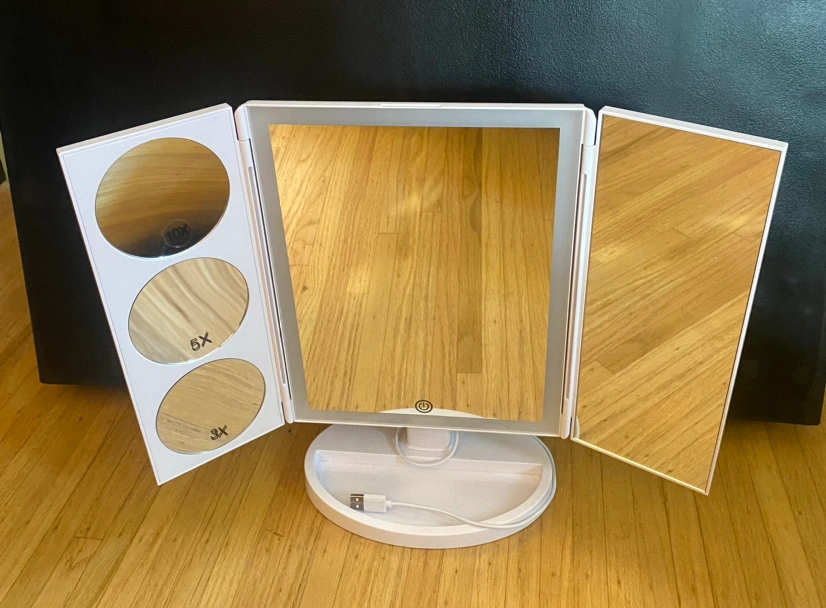 LED trifold makeup mirror